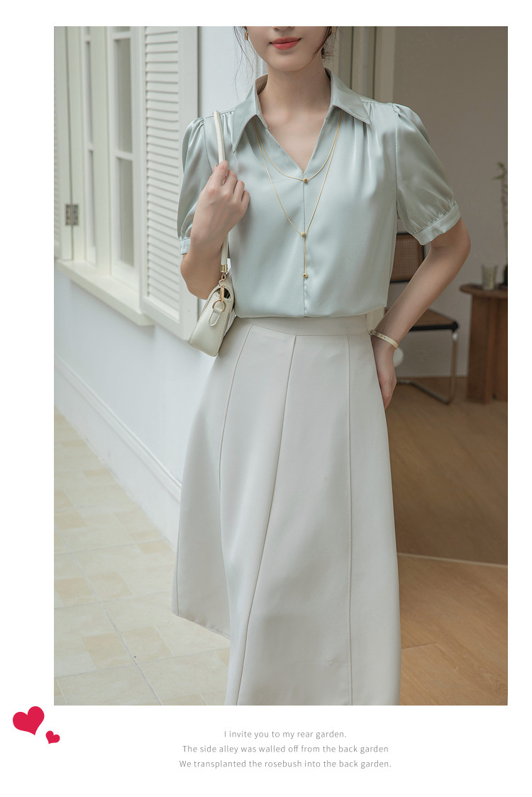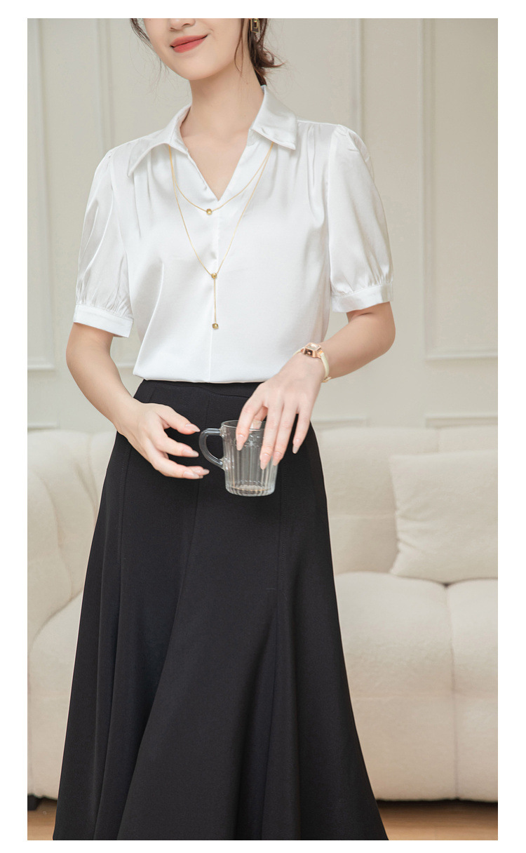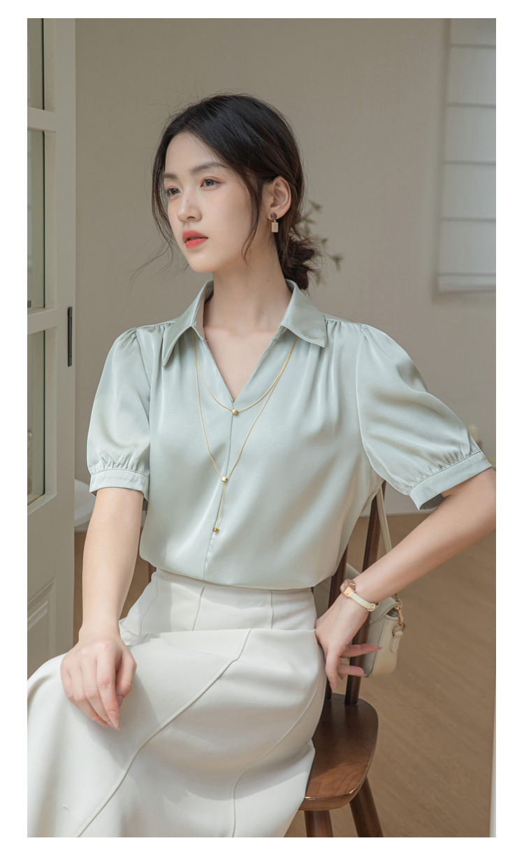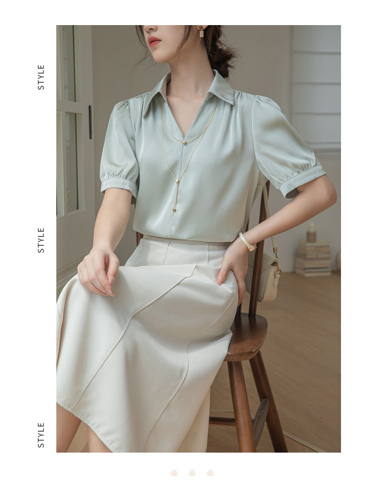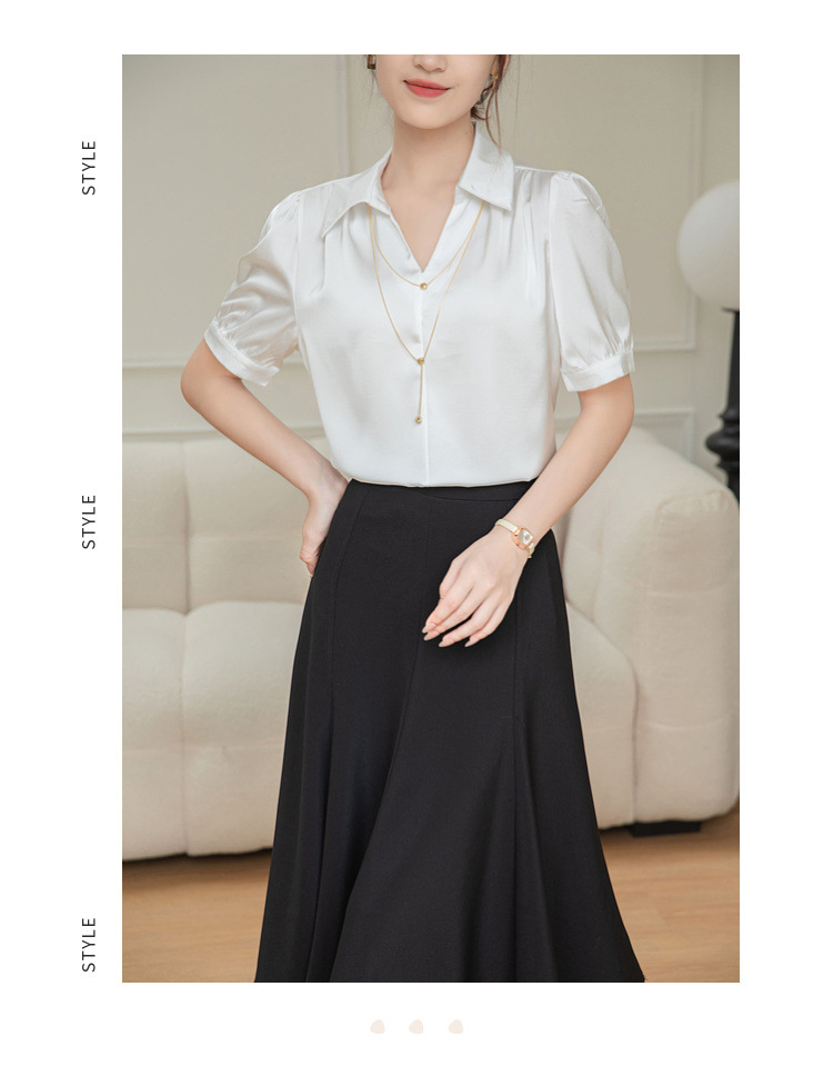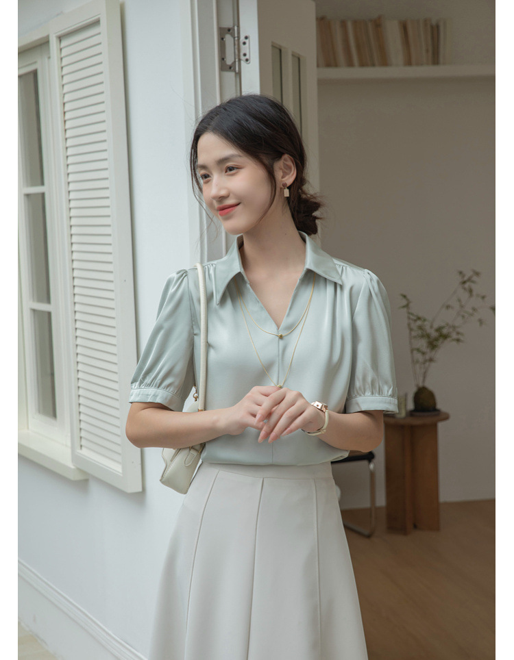 흰색 반팔 셔츠 여성의 여름 새로운 디자인 센스 니쉬 옷깃 기질 작은 통근 전문 셔츠 도매스토어 가기