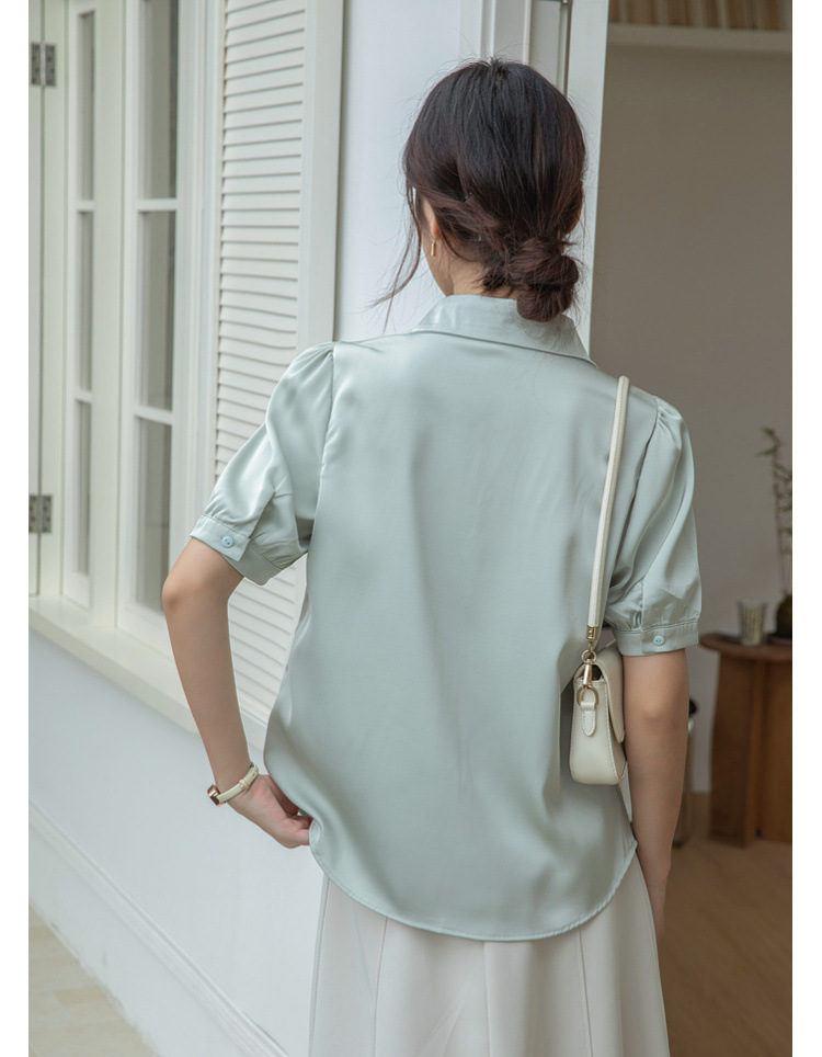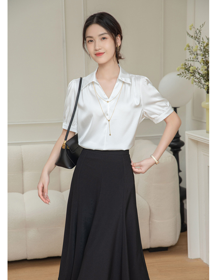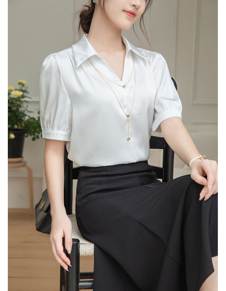 흰색 반팔 셔츠 여성의 여름 새로운 디자인 센스 니쉬 옷깃 기질 작은 통근 전문 셔츠 도매