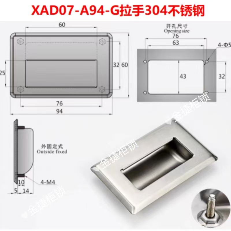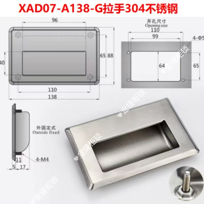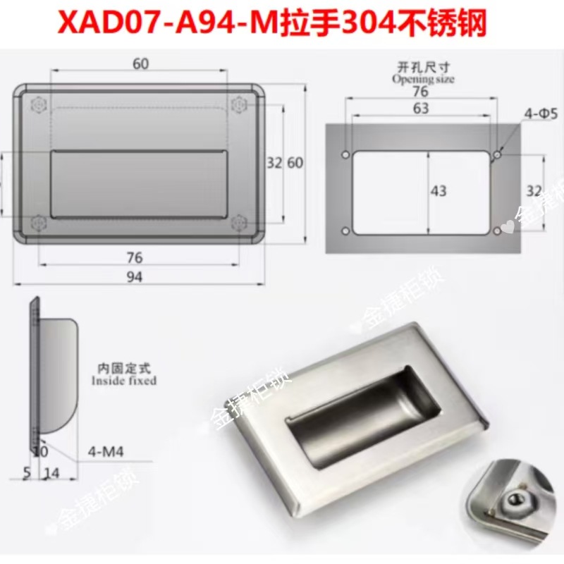 Yiheda 304 스테인레스 스틸 XAD01/02/05/06/07/8 내장 핸들 산업용 은폐 핸들스토어 가기