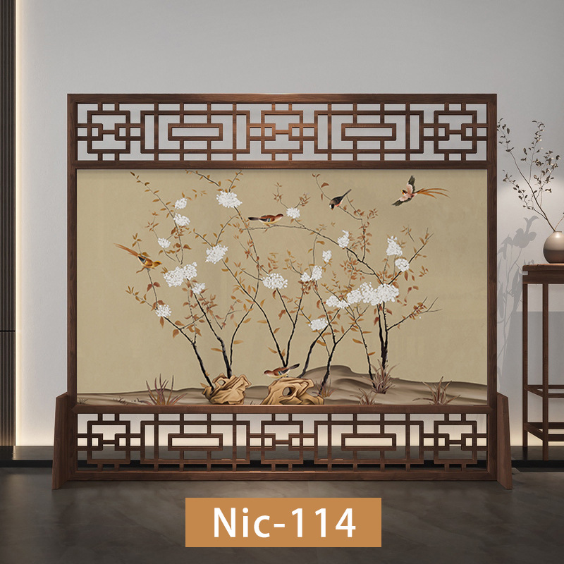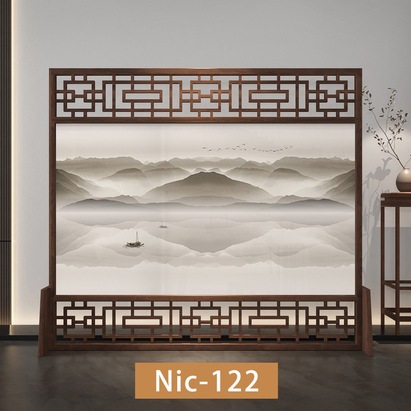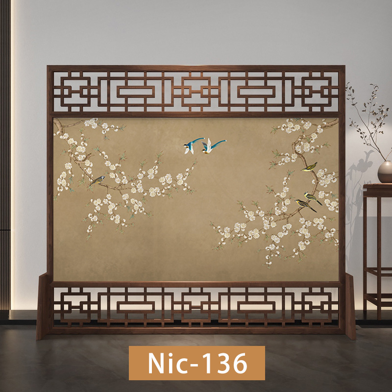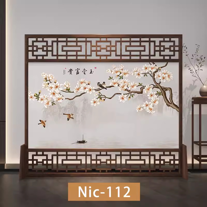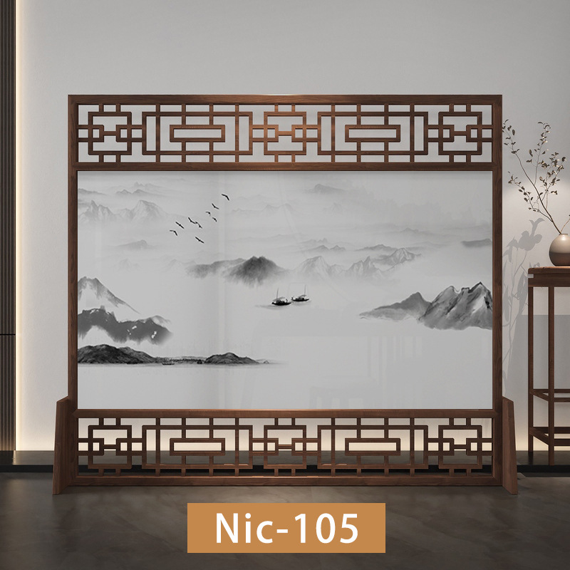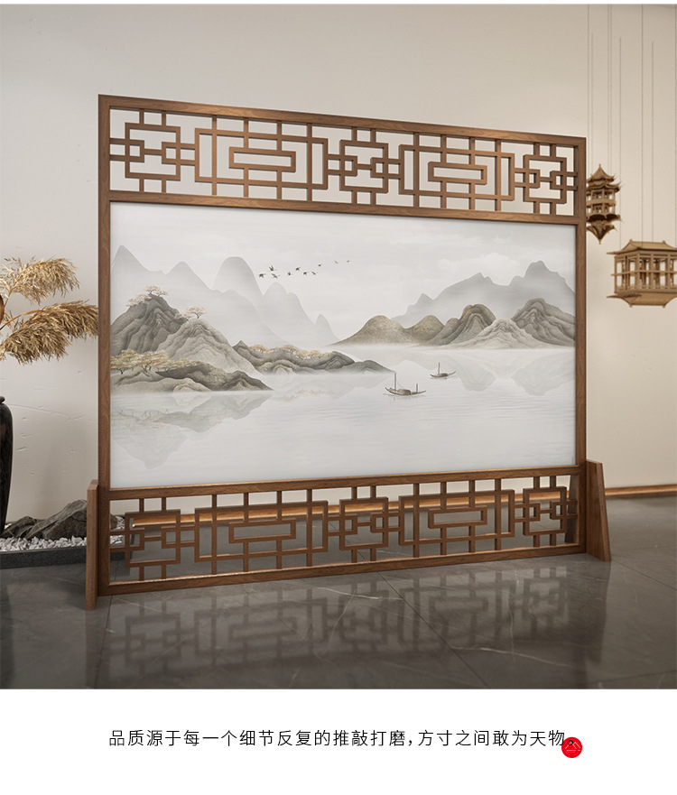 W * 호텔 다실 사무실 입구 현관 스크린은 거실을 막기 위해 문에 새로운 중국 단단한 나무 스크린 파티션을 새겼습니다.