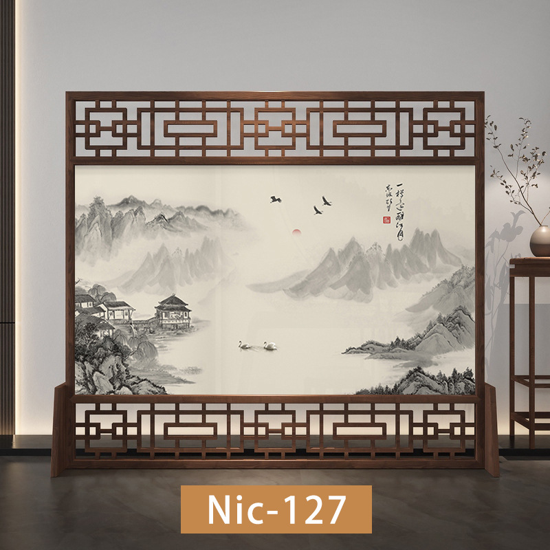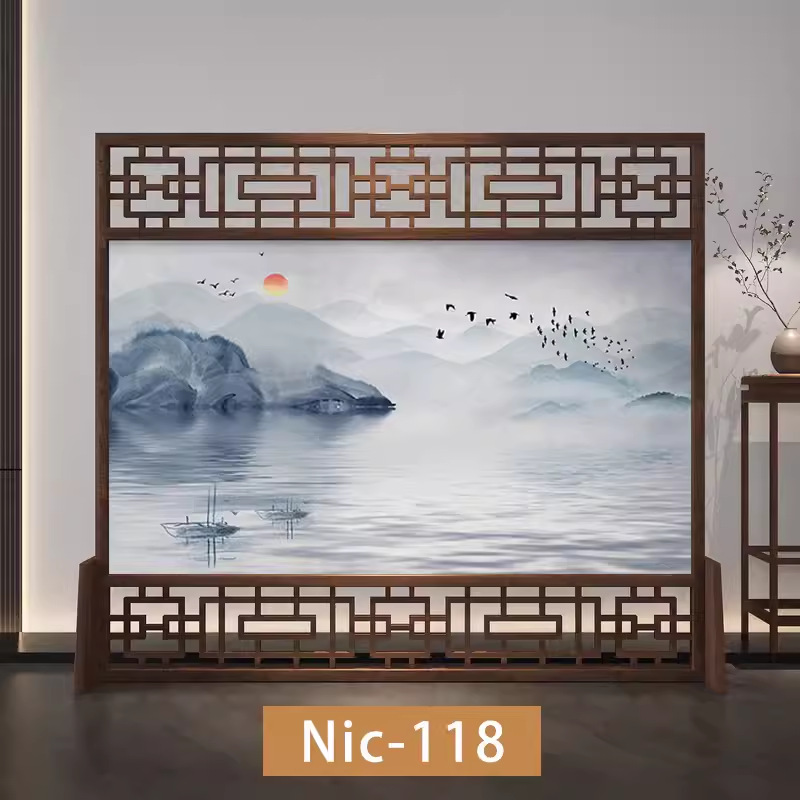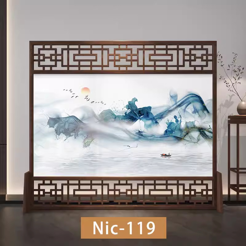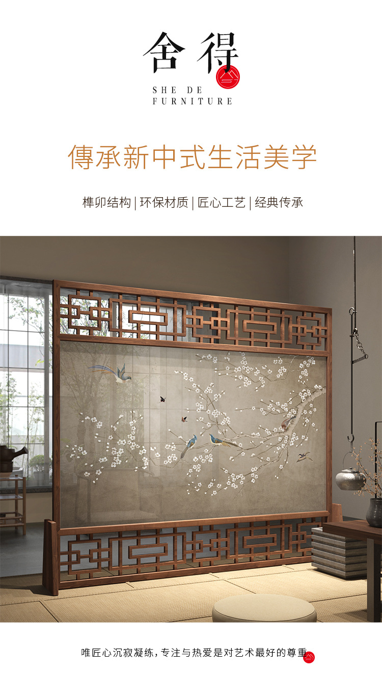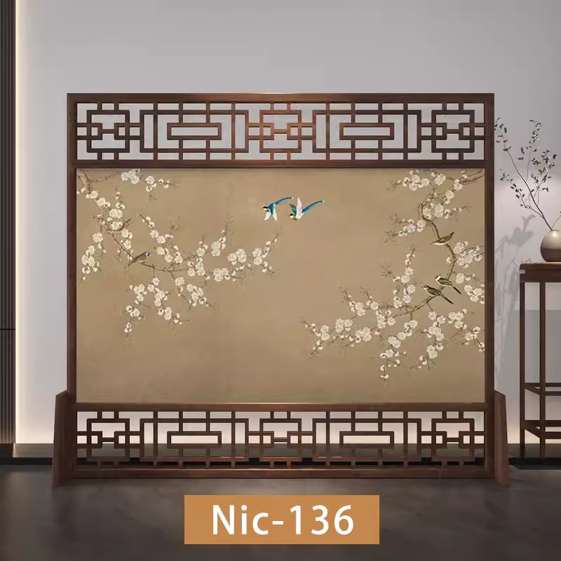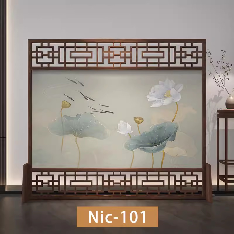 W * 호텔 다실 사무실 입구 현관 스크린은 거실을 막기 위해 문에 새로운 중국 단단한 나무 스크린 파티션을 새겼습니다.