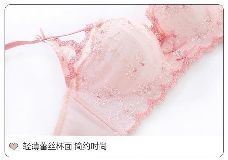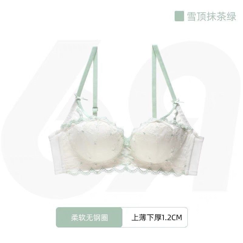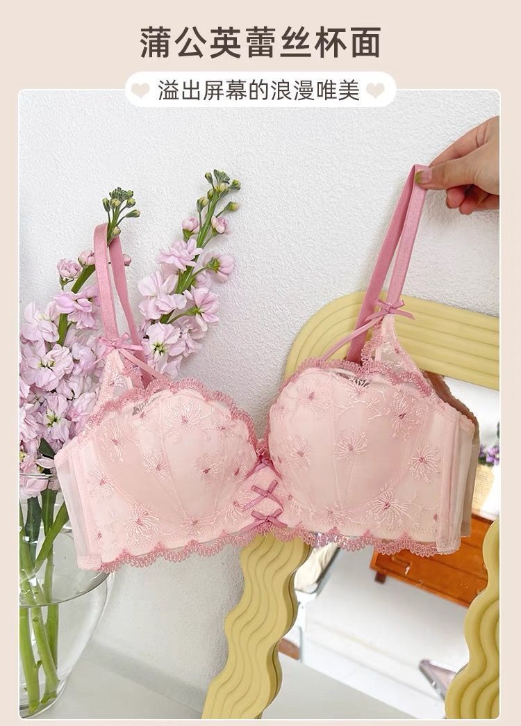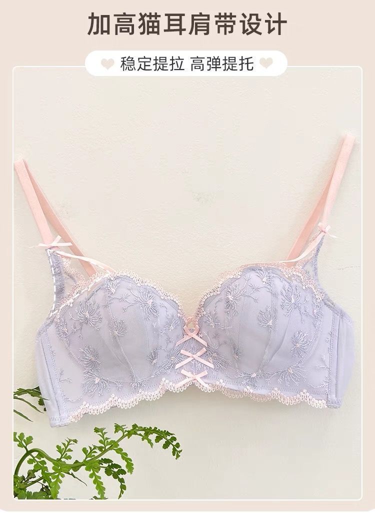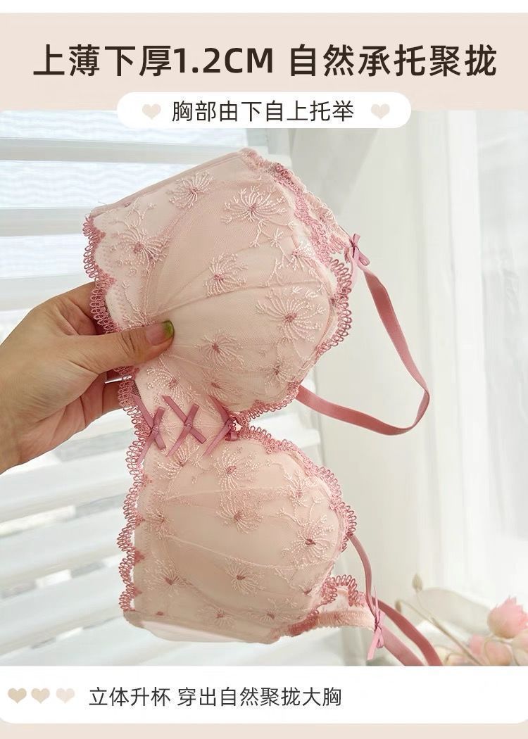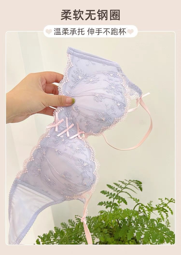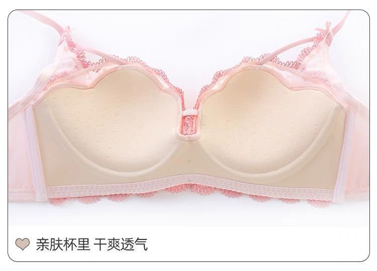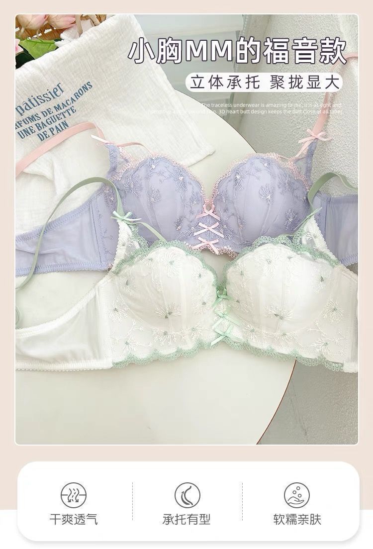가슴이 작은 여성을 위한 일본 학생 속옷, 푸쉬업 브라, 여성용 레이스 와이어 프리 얇은 브라 세트