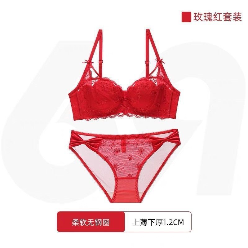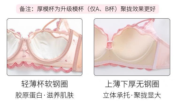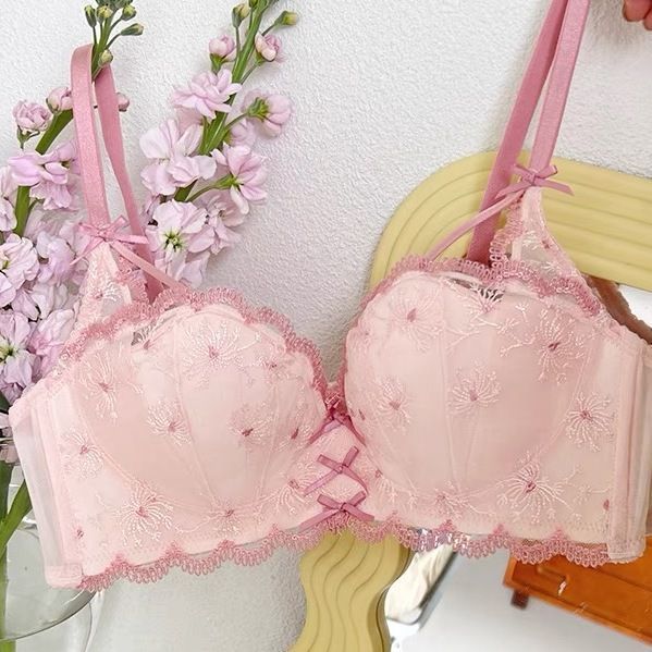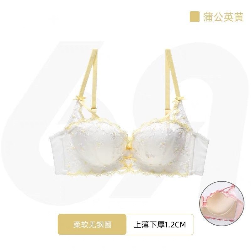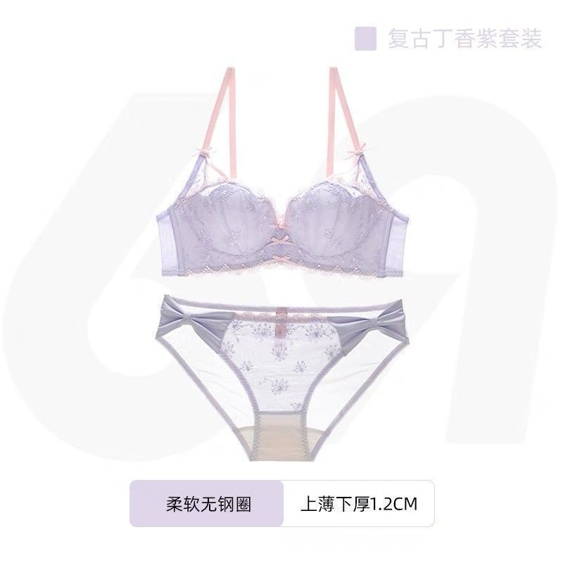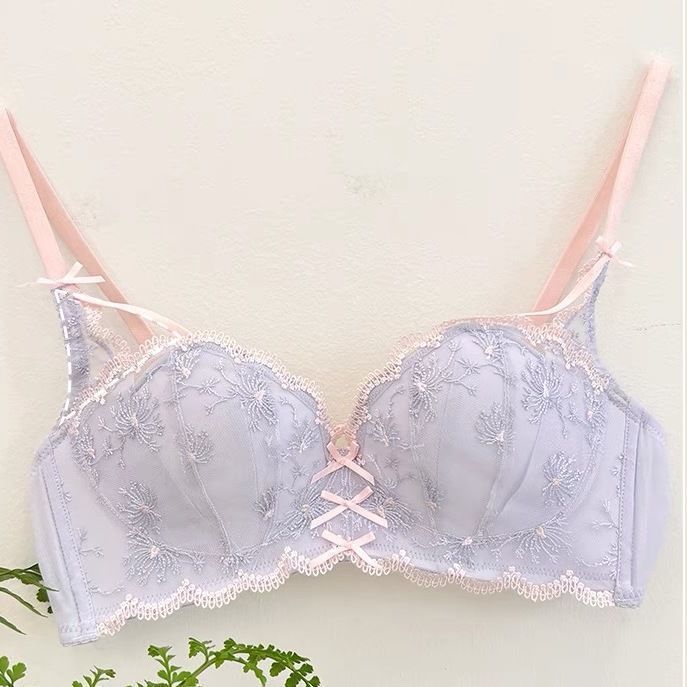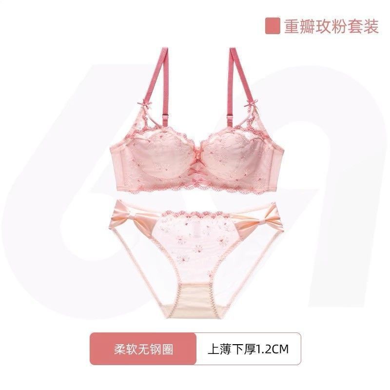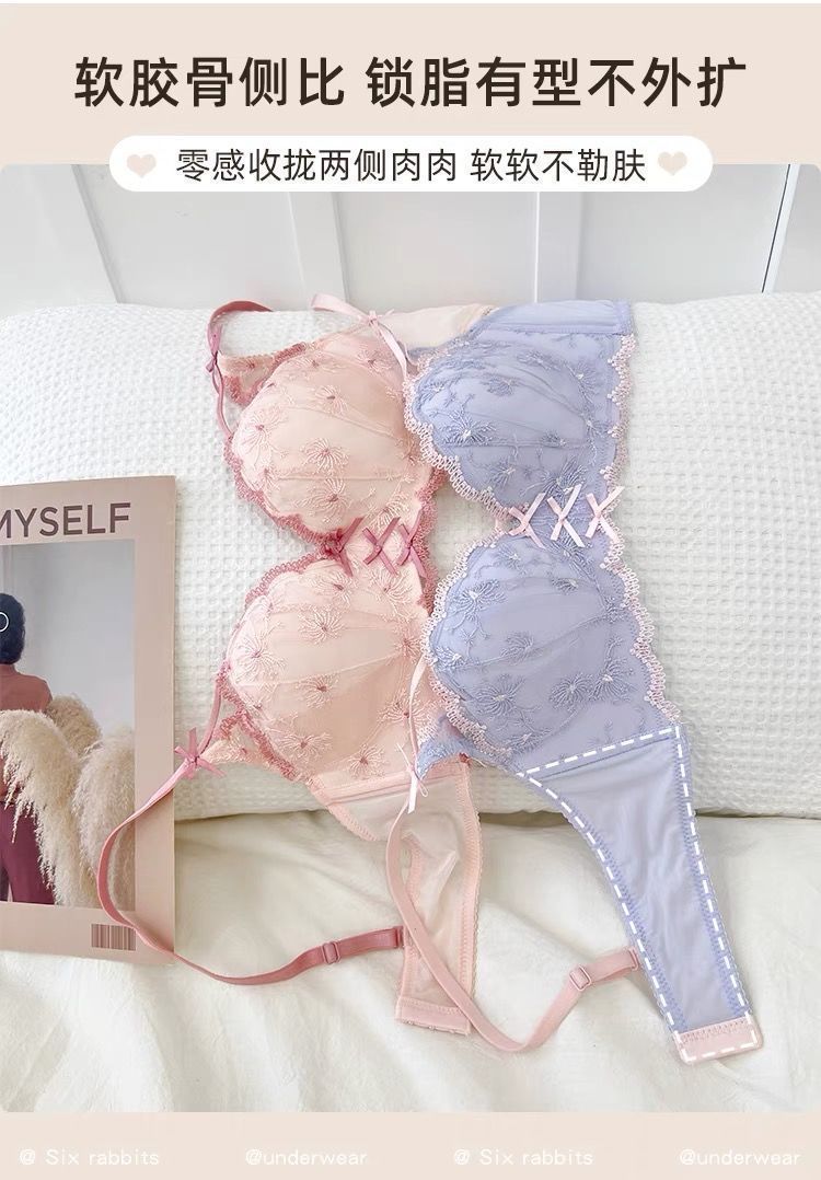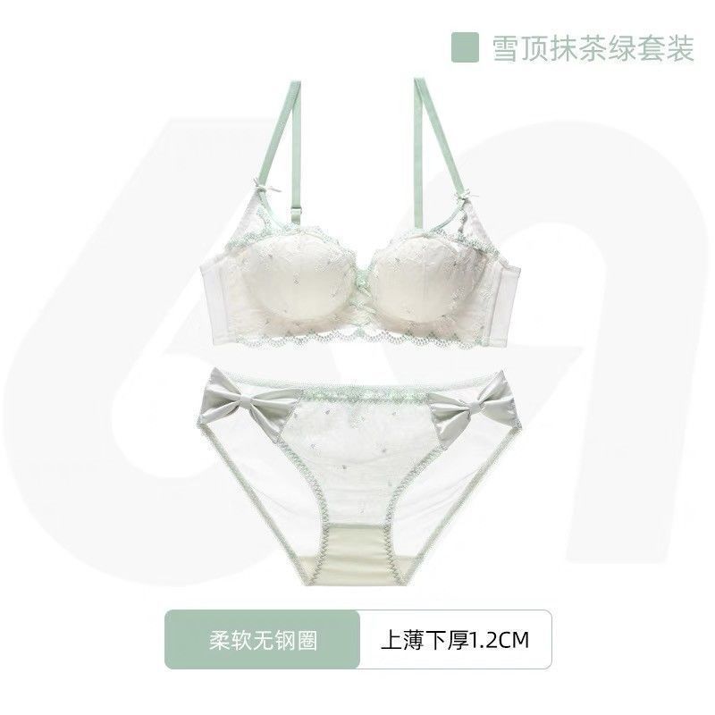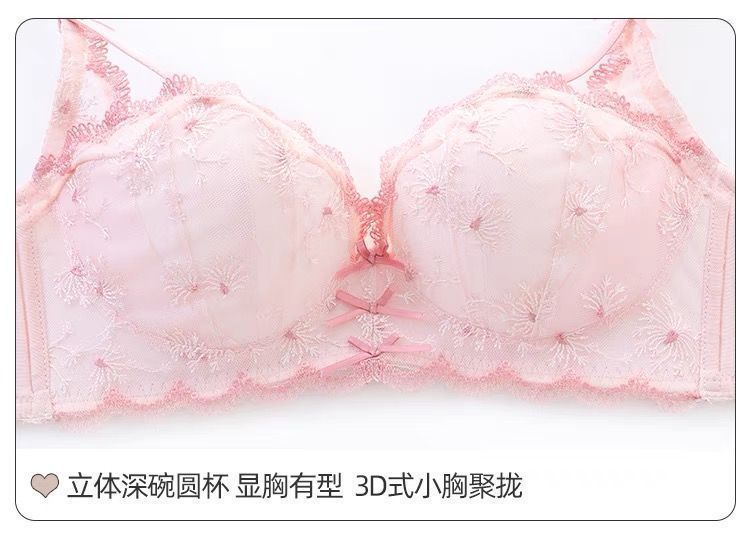 가슴이 작은 여성을 위한 일본 학생 속옷, 푸쉬업 브라, 여성용 레이스 와이어 프리 얇은 브라 세트