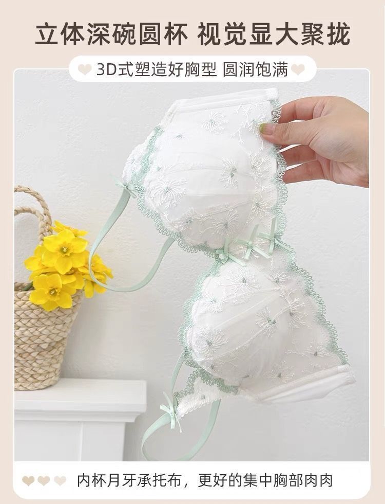 가슴이 작은 여성을 위한 일본 학생 속옷, 푸쉬업 브라, 여성용 레이스 와이어 프리 얇은 브라 세트스토어 가기