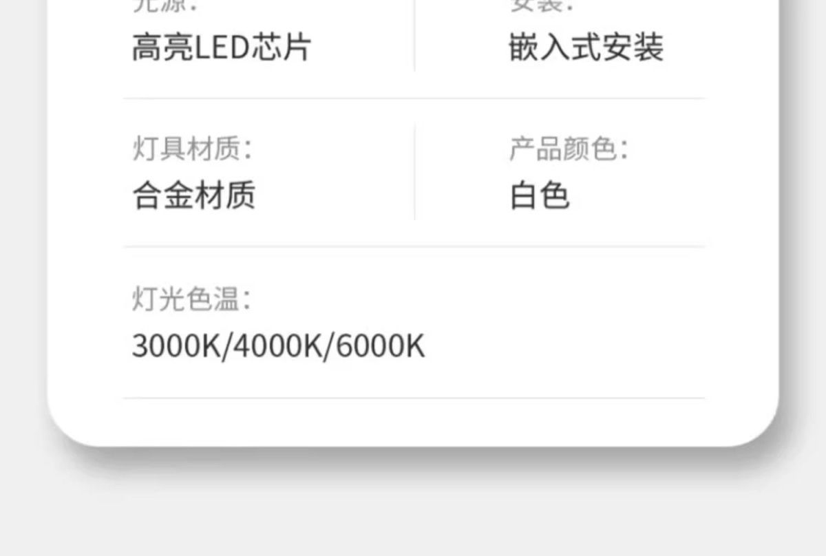 • 6W 화이트 라이트 프리 오프닝 50-85