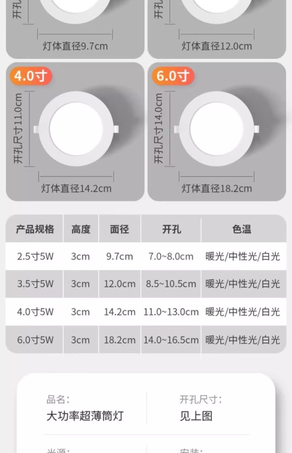 통 led4 인치 12w5w 임베디드 5 인치 18 와트 9cm 천장 조명 스포트라이트 6 개구부 15cm 상점 구멍 조명스토어 가기