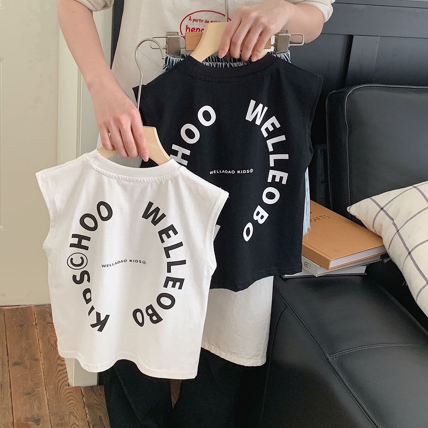100% 면 아동 의류 2025 여름 새 스타일 소년 조끼 티셔츠 서양식 양복 조끼 편지 소녀 베이비 탑스토어 가기