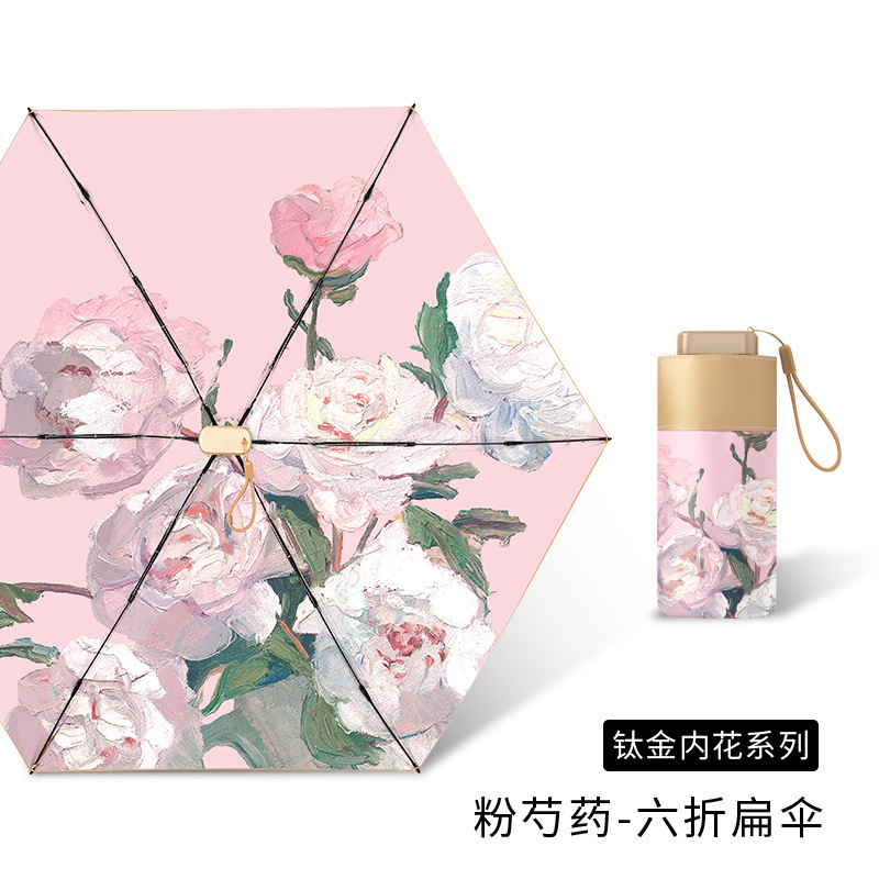 • [티타늄 6 배 편평한 우산] 분말 모란 (울트라 라이트 휴대용)