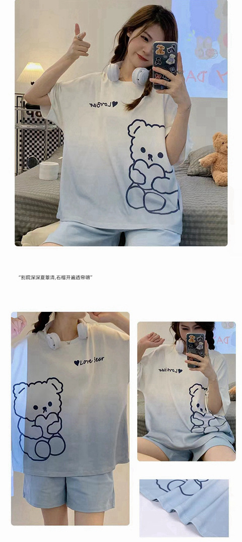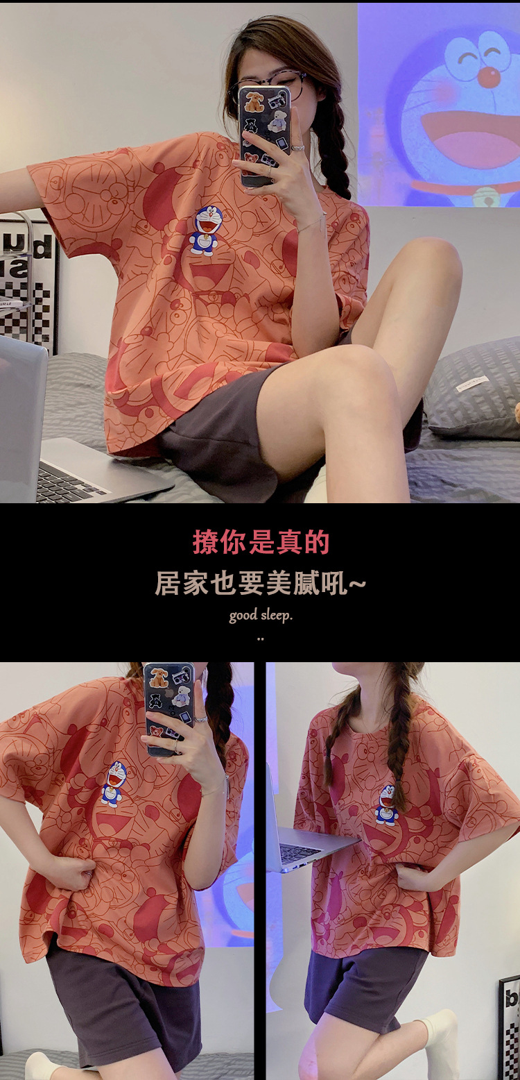 여성용 잠옷 반팔 반바지 라운드넥 루즈핏 대형 사이즈 홈웨어 투피스 세트 여름 외출 가능 만화 소녀 스타일 귀여움스토어 가기