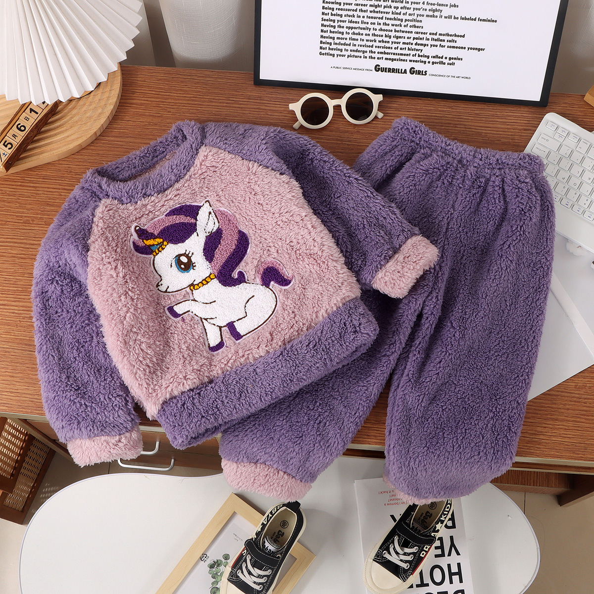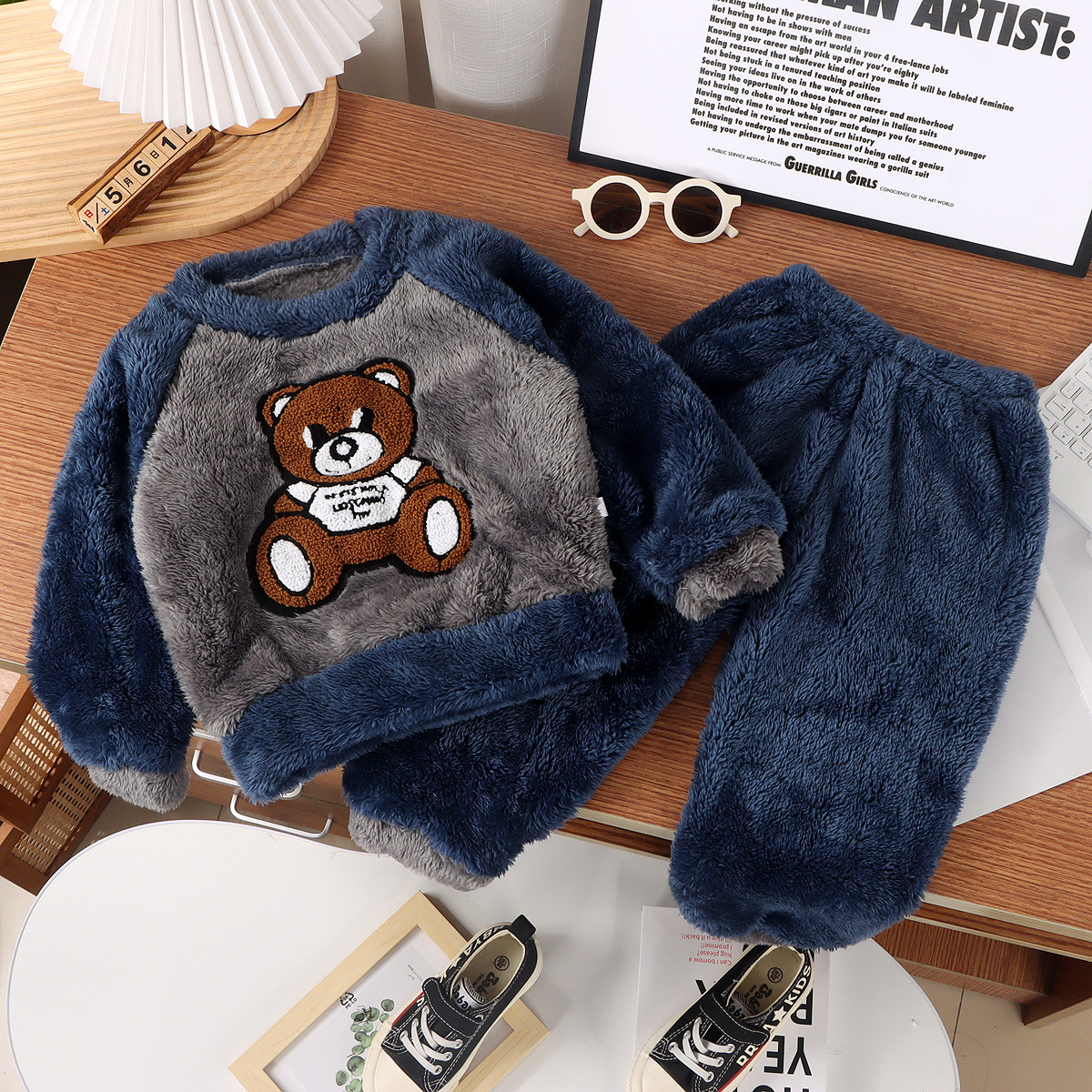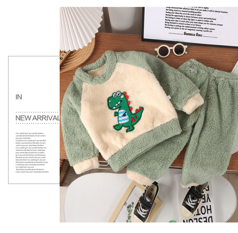 재고 어린이 플란넬 잠옷 세트 가을과 겨울 긴 머리 기모 남자와 여자를위한 따뜻한 집 옷