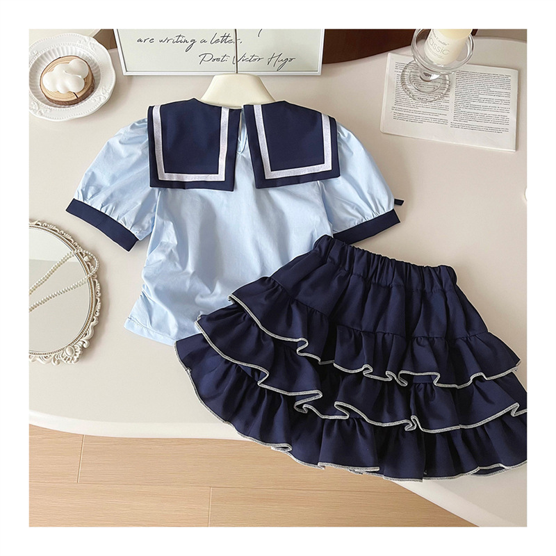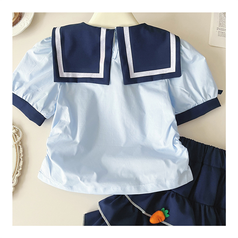 【재고 있음】아동복 2025 여아 여름 신상 여아 반팔 세트 컬리지 스타일 토끼 경찰관 셔츠스토어 가기