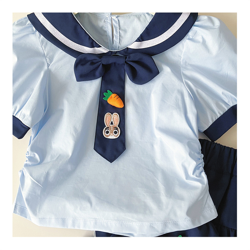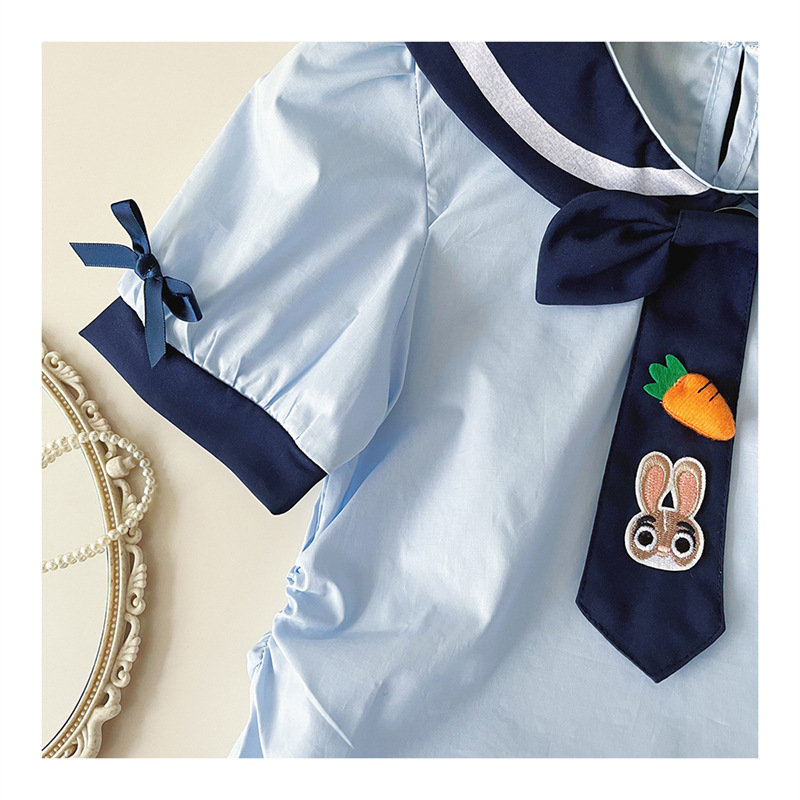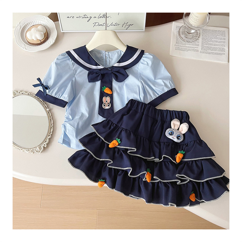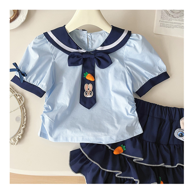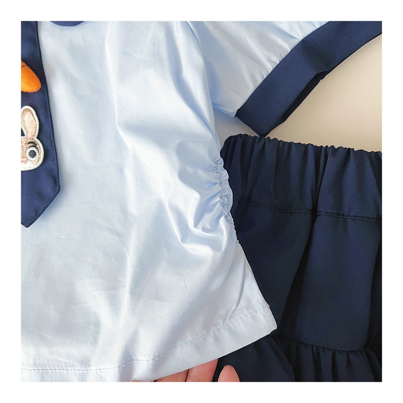 【재고 있음】아동복 2025 여아 여름 신상 여아 반팔 세트 컬리지 스타일 토끼 경찰관 셔츠
