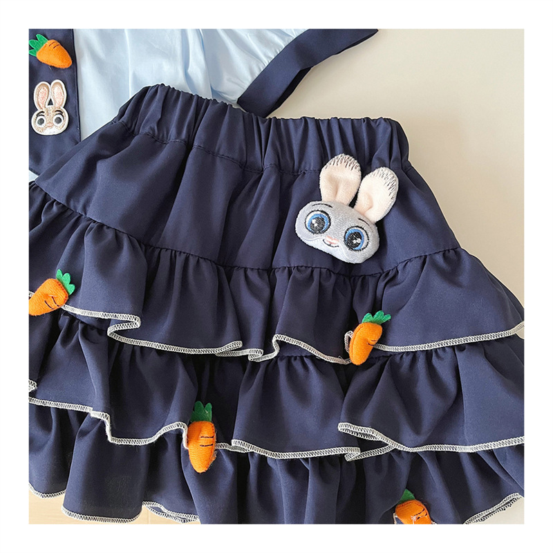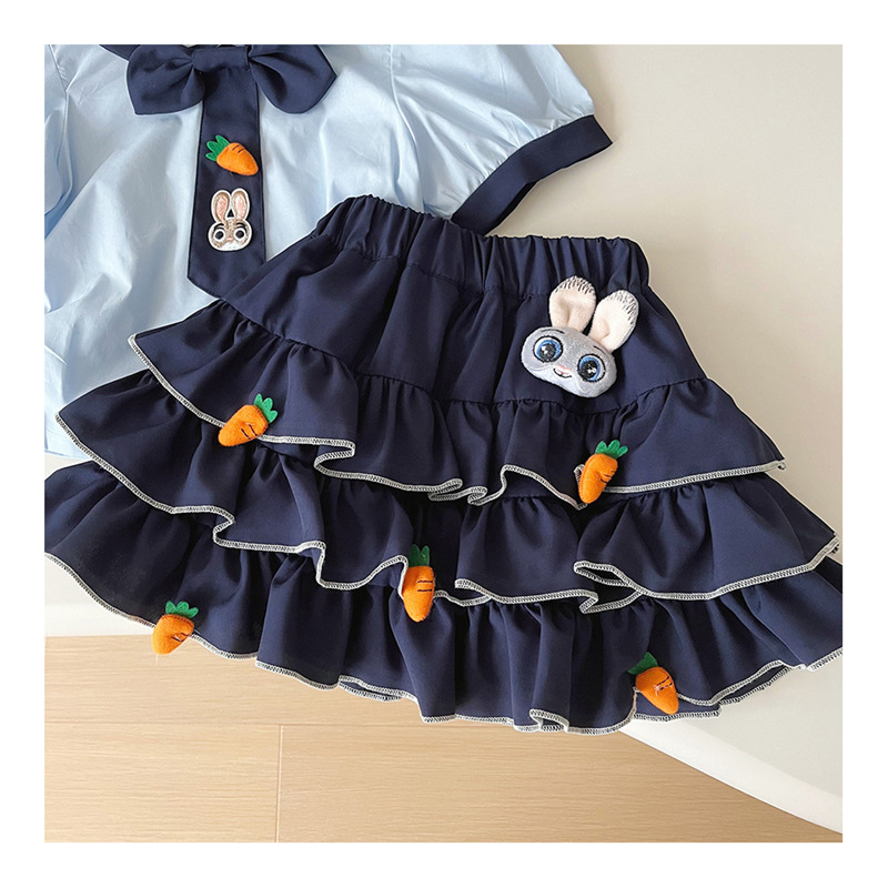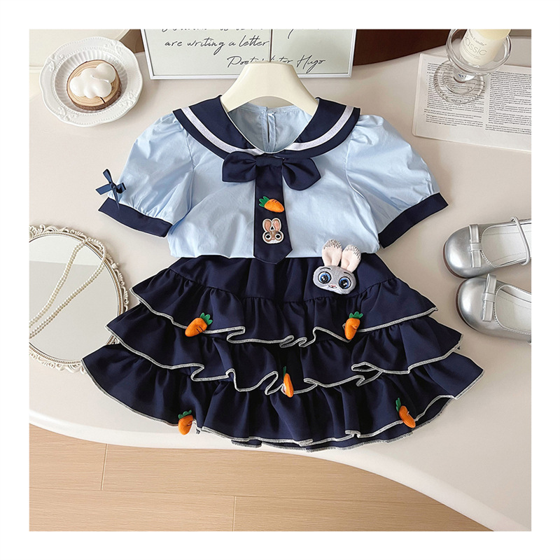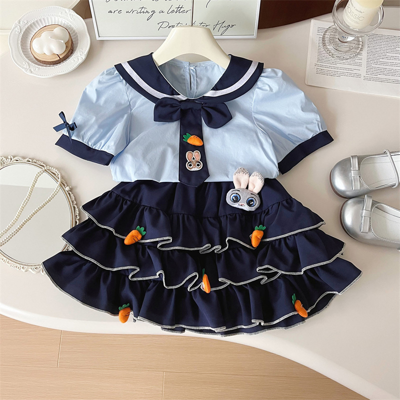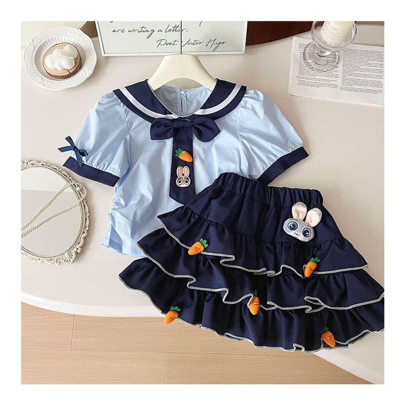 【재고 있음】아동복 2025 여아 여름 신상 여아 반팔 세트 컬리지 스타일 토끼 경찰관 셔츠