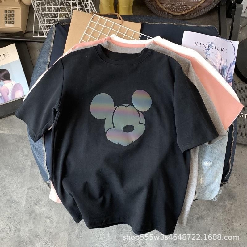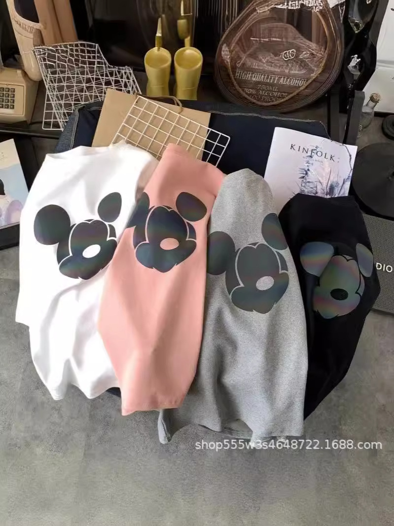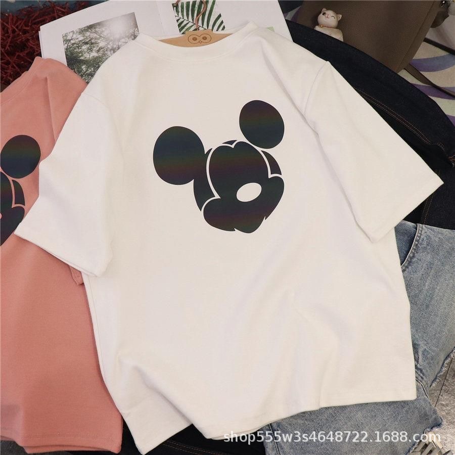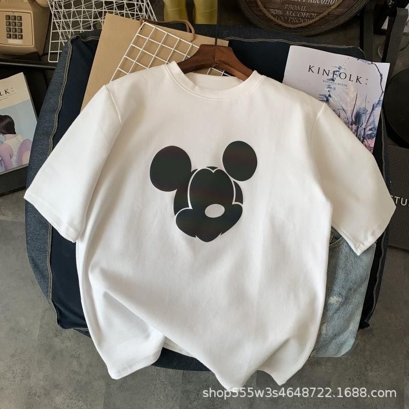 남학생과 여학생을위한 코튼 반팔 티셔츠 2024 여름 중소 어린이 만화 인쇄 미키 마우스 소녀의 외부 착용 패션 t스토어 가기