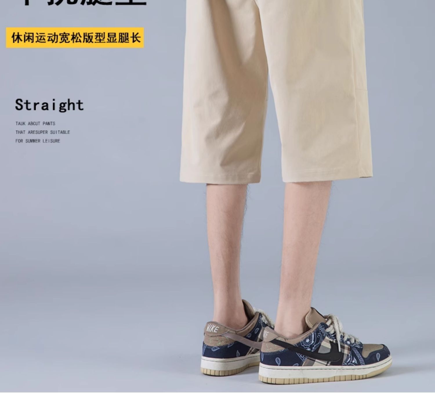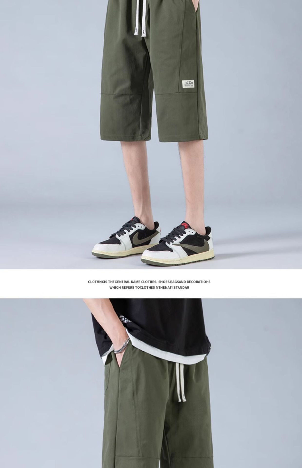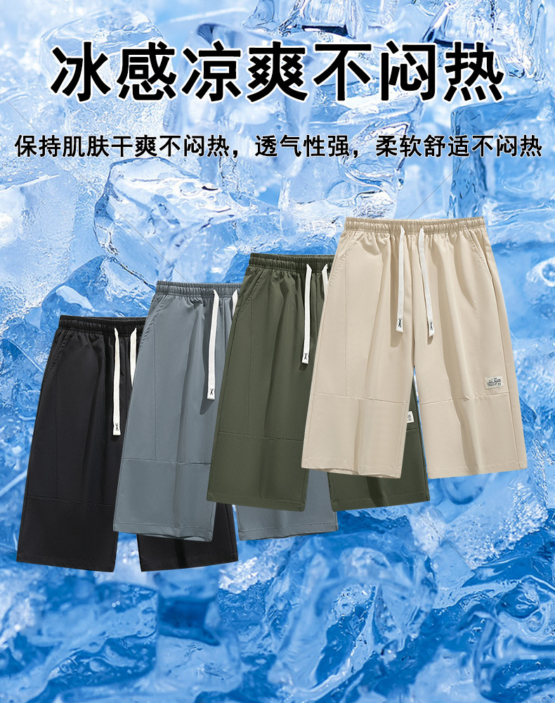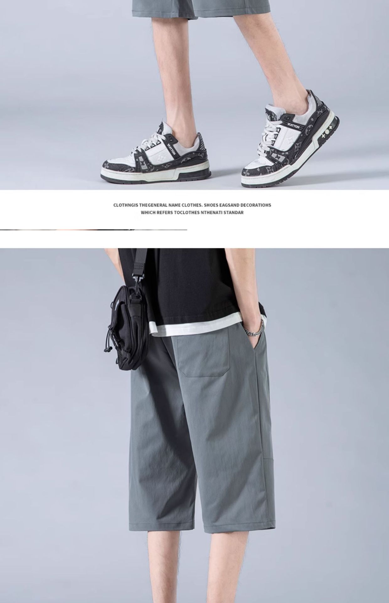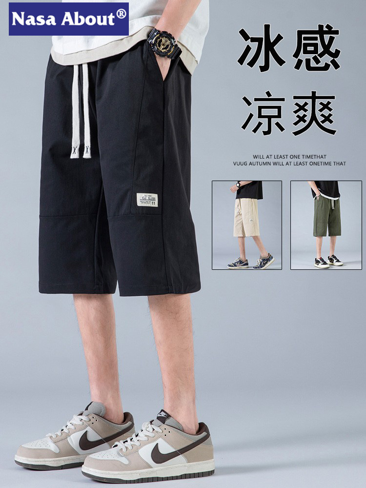 NASA 여름 자른 바지 남자의 얇은 유행 브랜드 2024 새로운 아이스 실크 빠른 건조 바지 느슨한 시원한 캐주얼 반바지