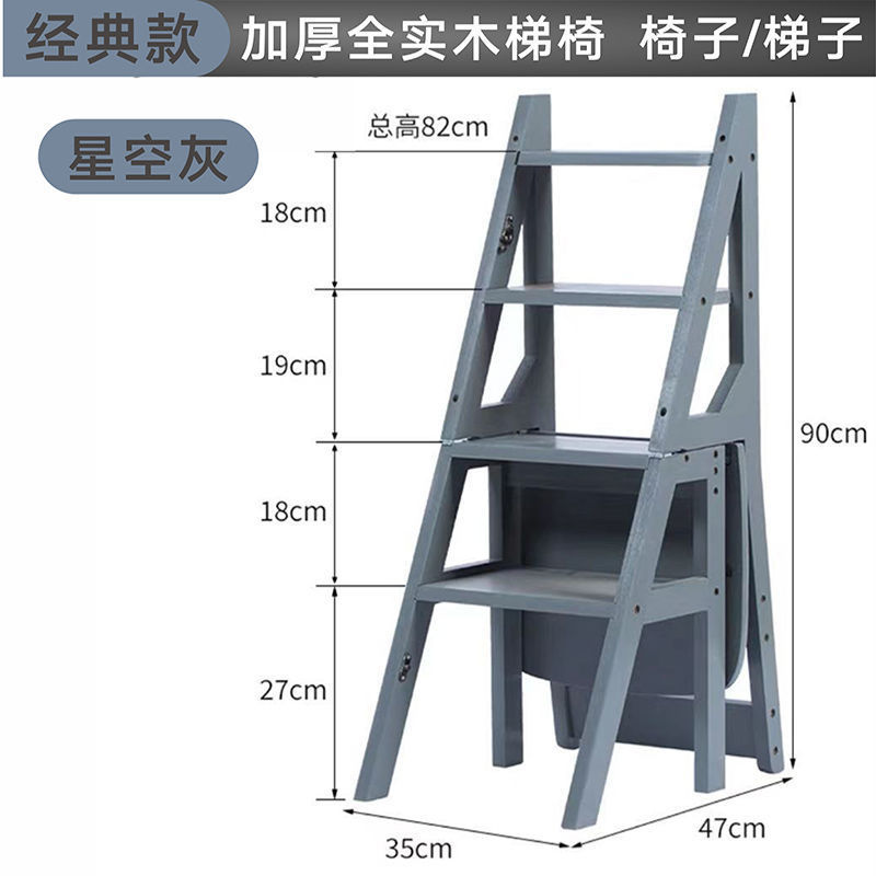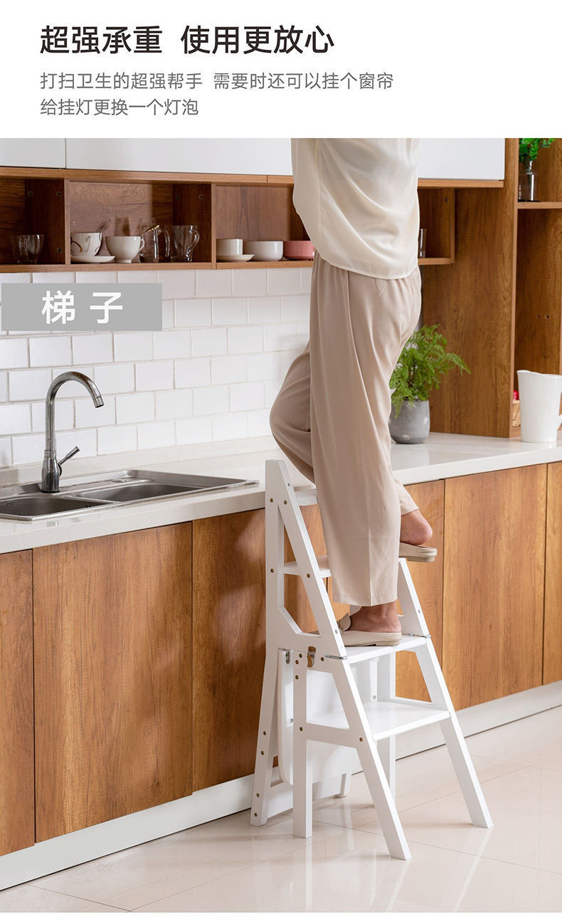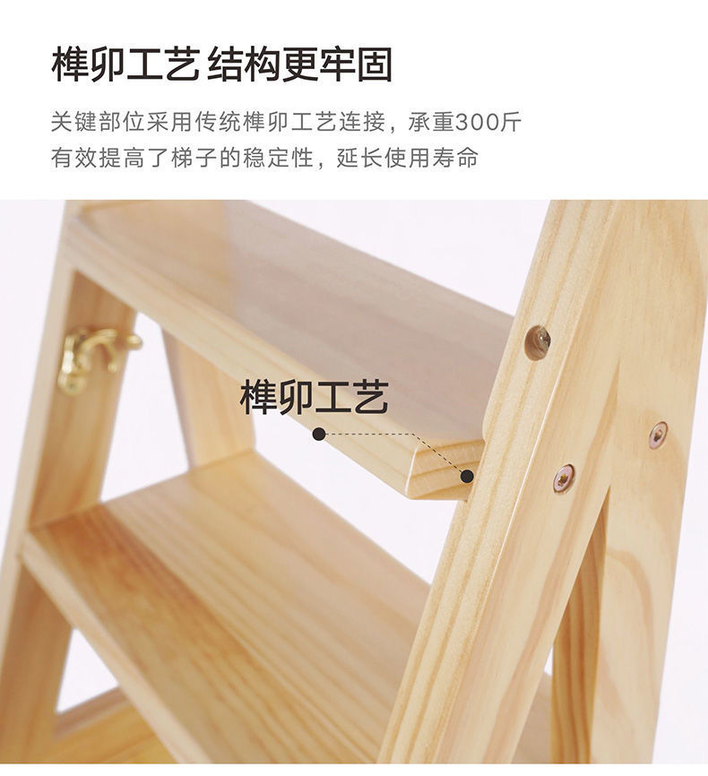 단단한 나무 사다리 다기능 접이식 사다리 의자 의자 의자 가구 실내 등반 계단 4 단계 헤링본 사다리 이중 목적 의자