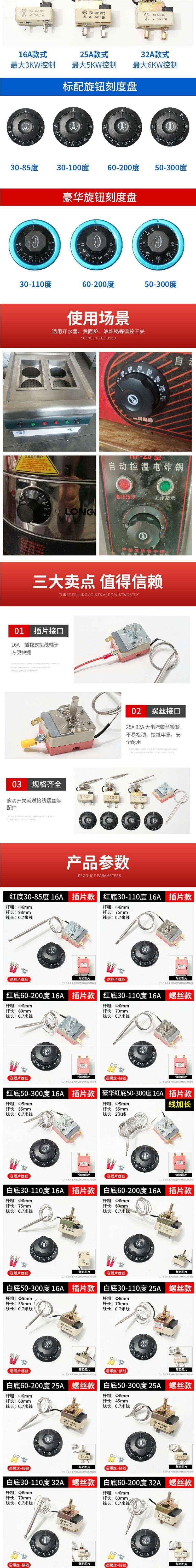 온도 제어 스위치 온도 컨트롤러 물 보일러 프라이어 전기 프라이어 전기 오븐 열 보존 테이블 온도 컨트롤러 국수 버킷