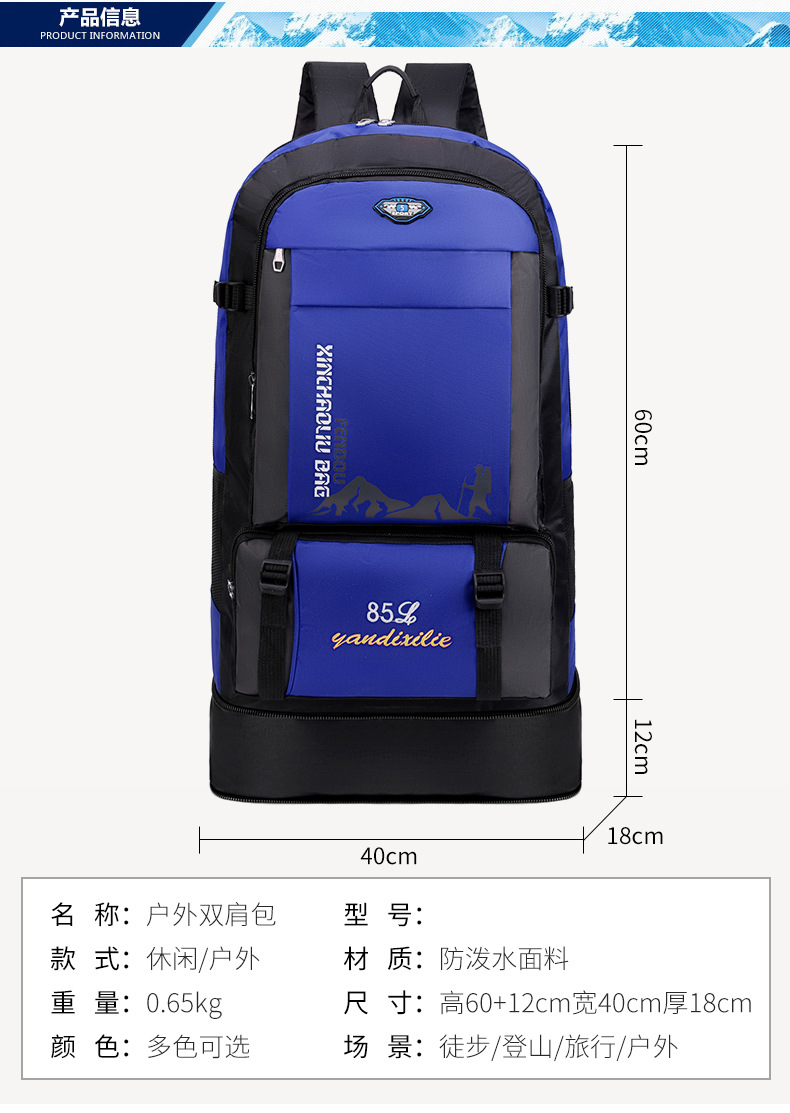 국경 전용 85 리터 여행 배낭 남성 방수 야외 등산 가방 레저 수하물 가방 도매