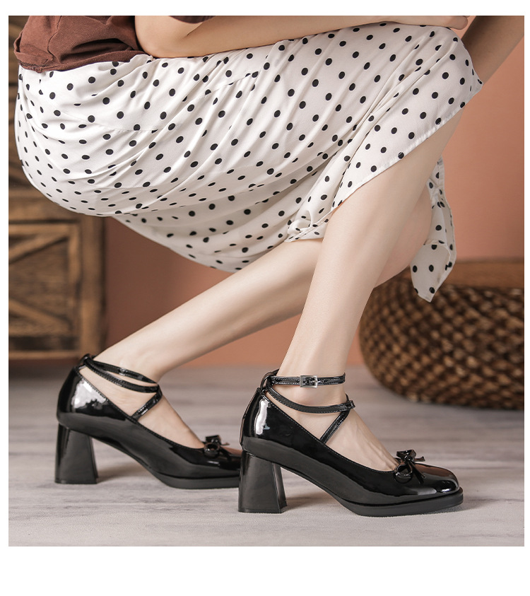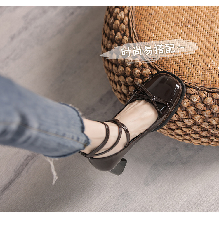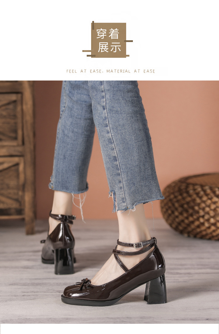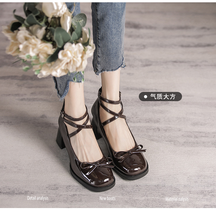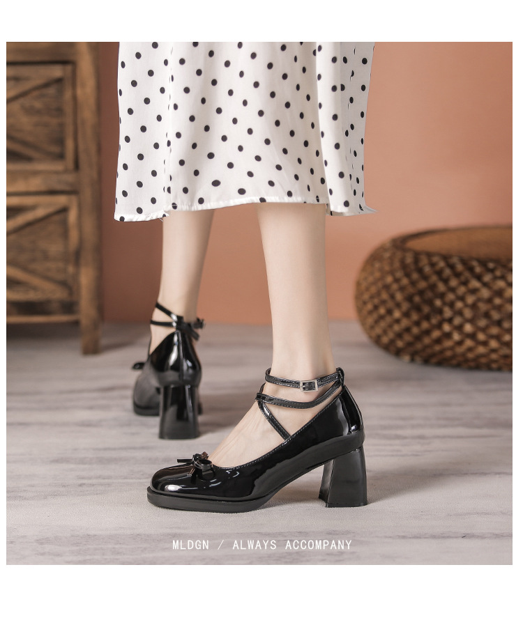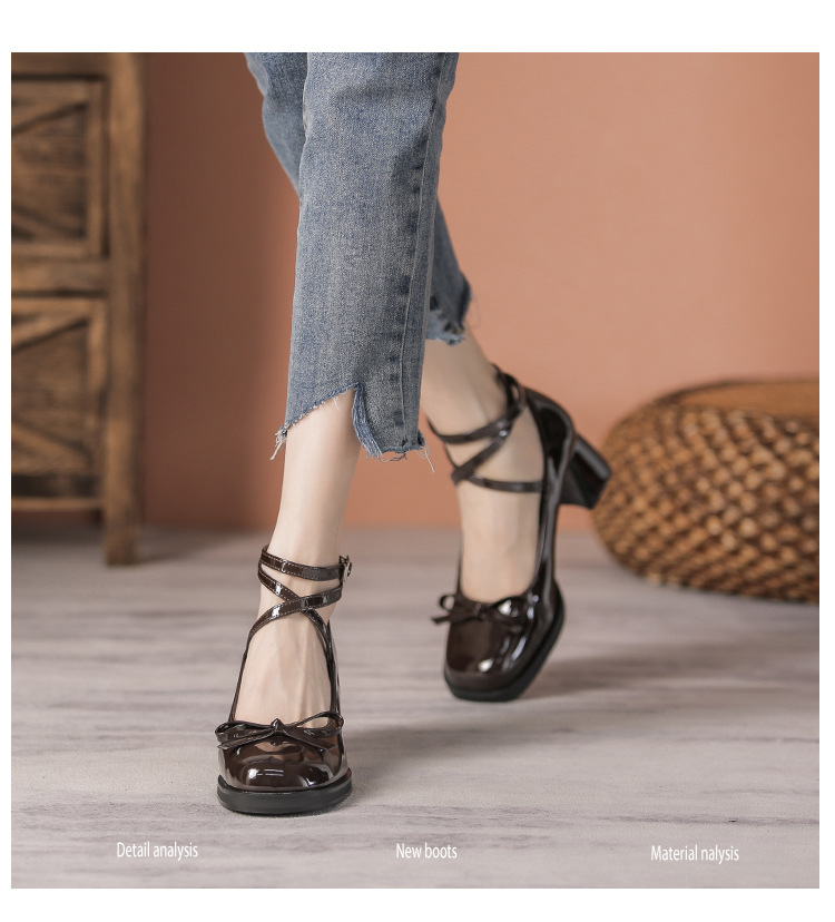 메리제인 여성용 가죽 신발 2025년 신상 두꺼운 굽 다용도 프렌치 레트로 크로스 리본 하이힐