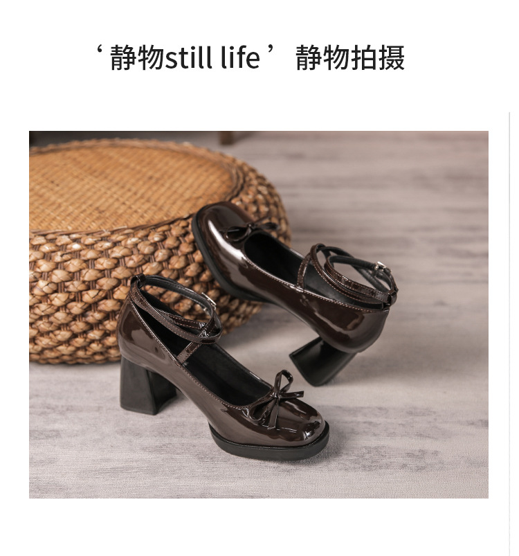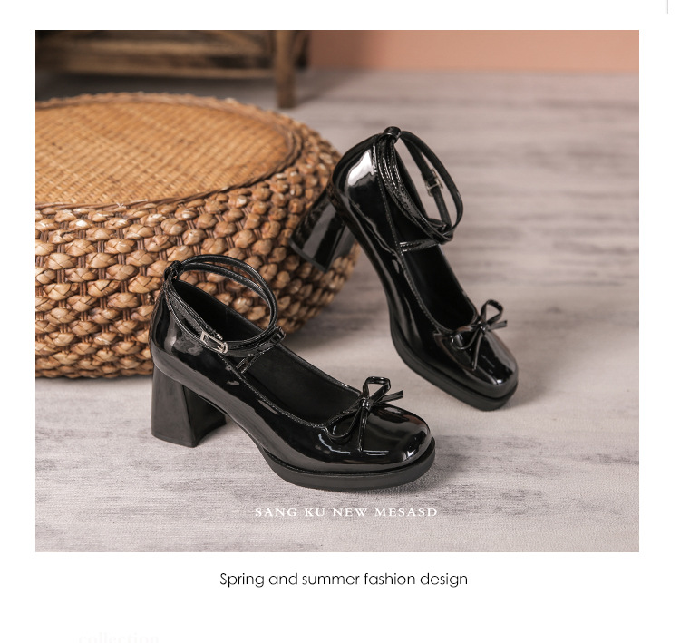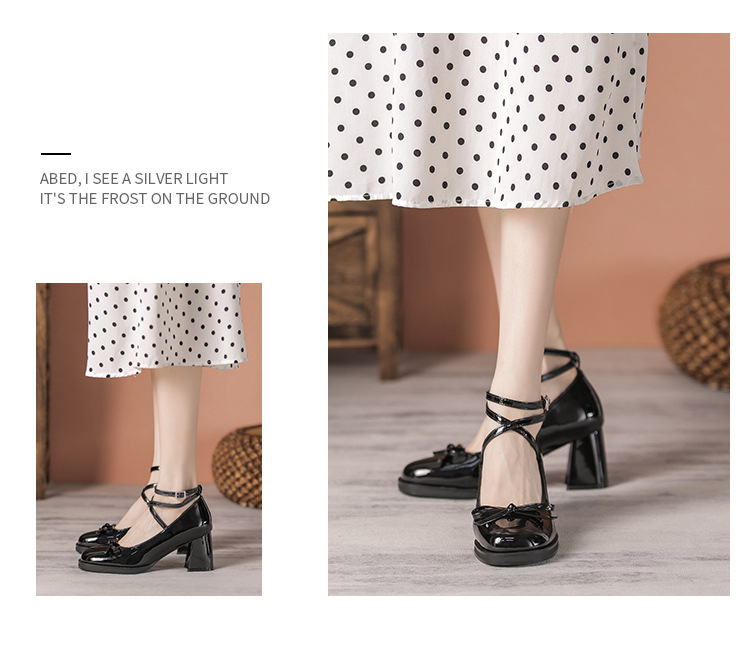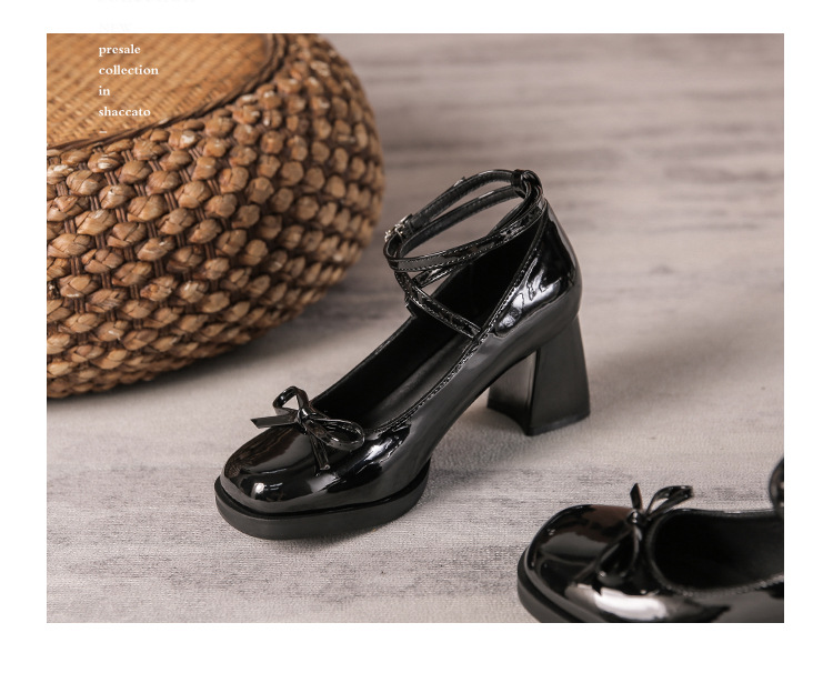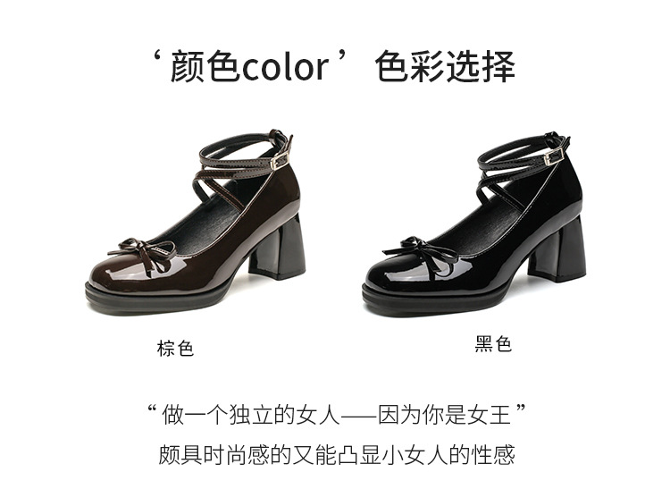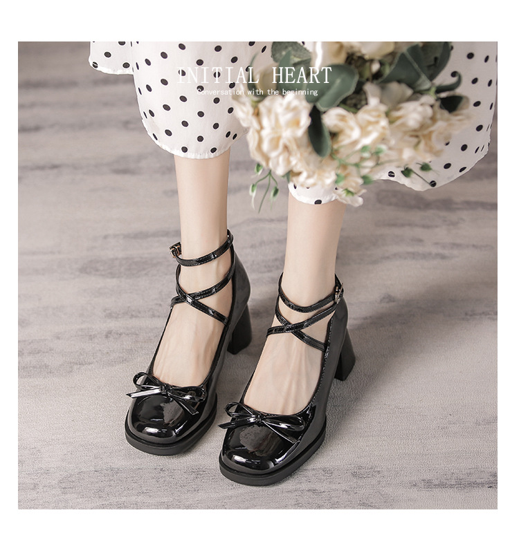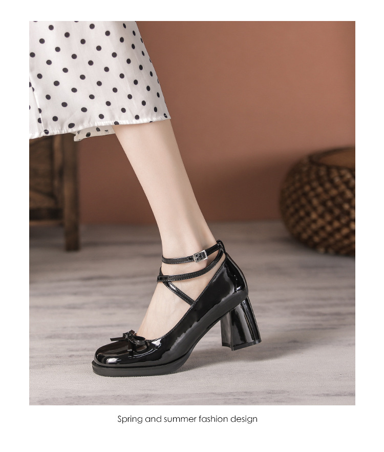 메리제인 여성용 가죽 신발 2025년 신상 두꺼운 굽 다용도 프렌치 레트로 크로스 리본 하이힐
