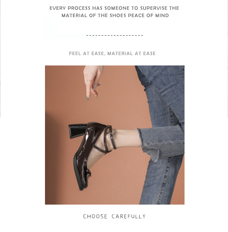 메리제인 여성용 가죽 신발 2025년 신상 두꺼운 굽 다용도 프렌치 레트로 크로스 리본 하이힐스토어 가기