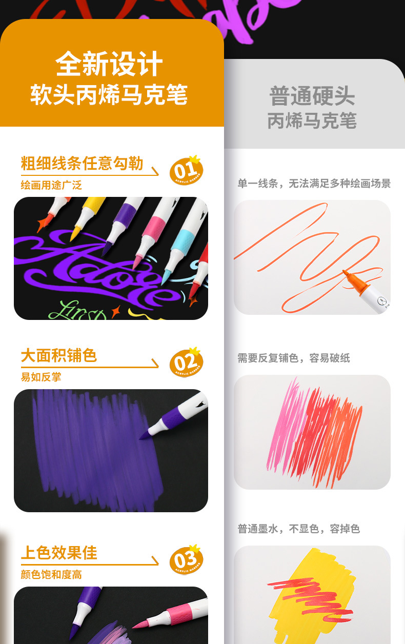 마스터 아크릴 마커 단일 선택적 보완 색상 단일 부드러운 머리 학생 특수 불투명 스택 가능한 컬러 펜