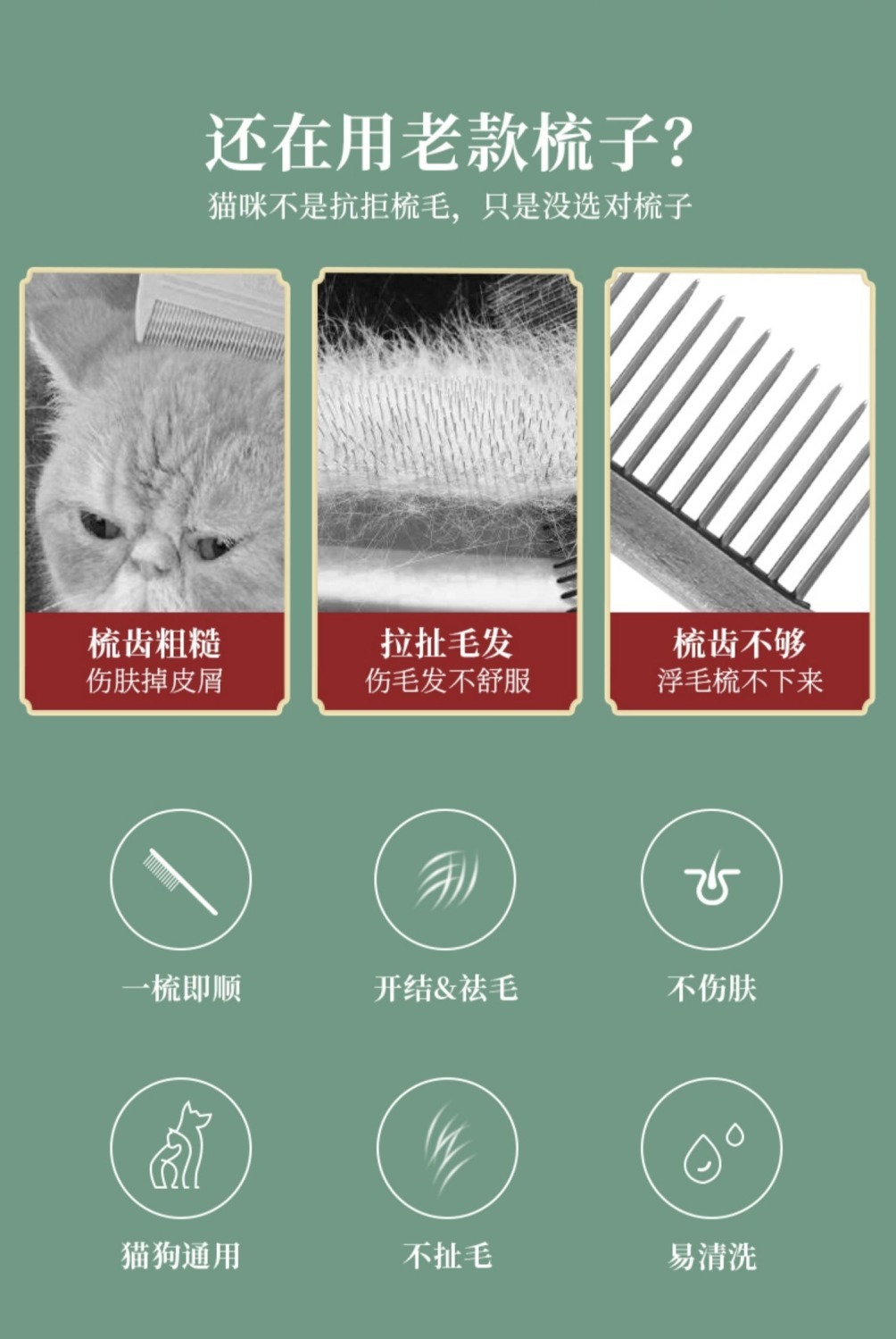 고양이 빗 고양이 빗 특수 빗 브러쉬 긴 머리 오픈 매듭 부동 머리 인공물 이빨 짧은 머리 개 애완 동물 빗
