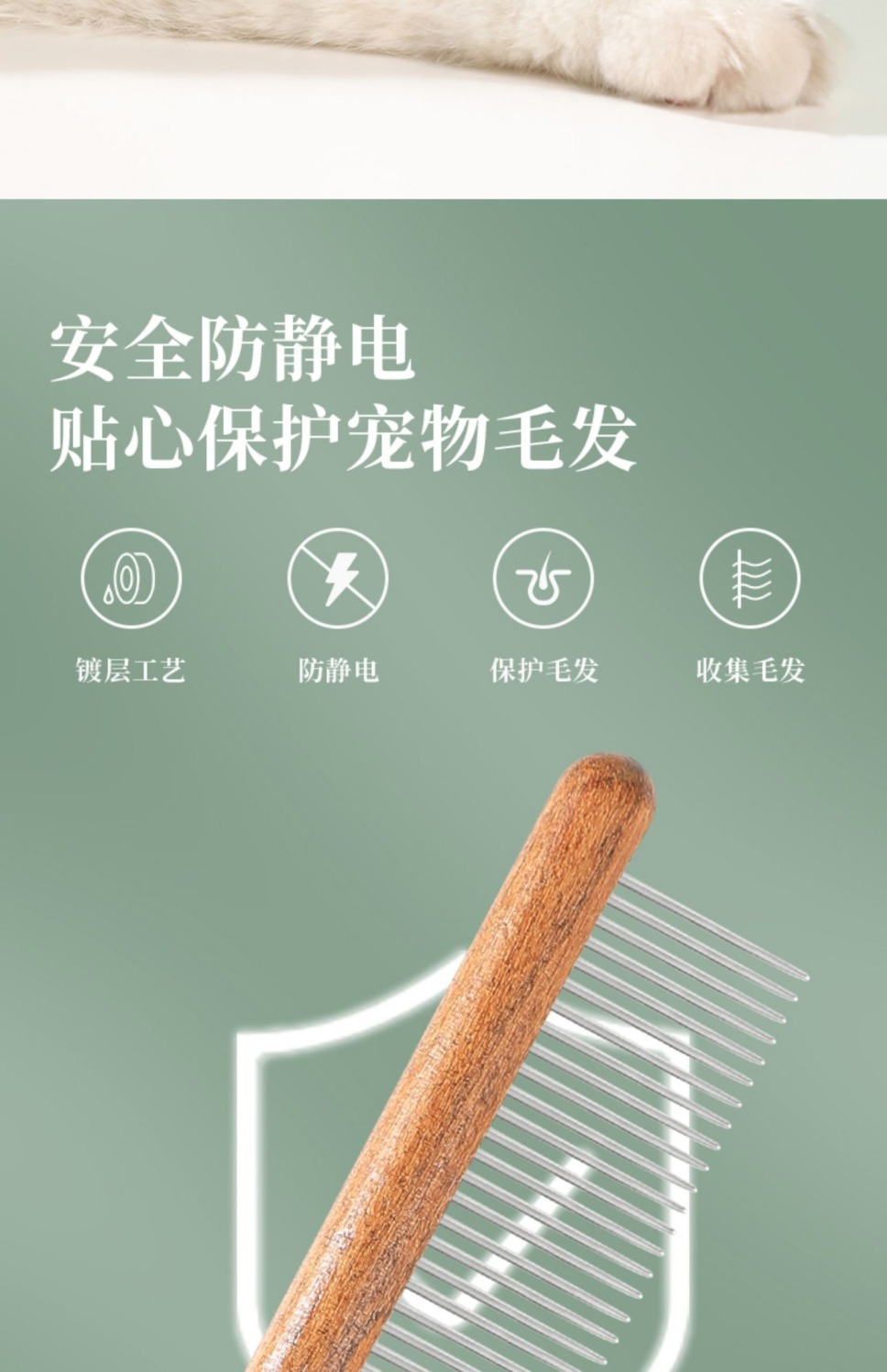 • 【촘촘한 빗】벼룩과 떠다니는 털을 제거합니다.