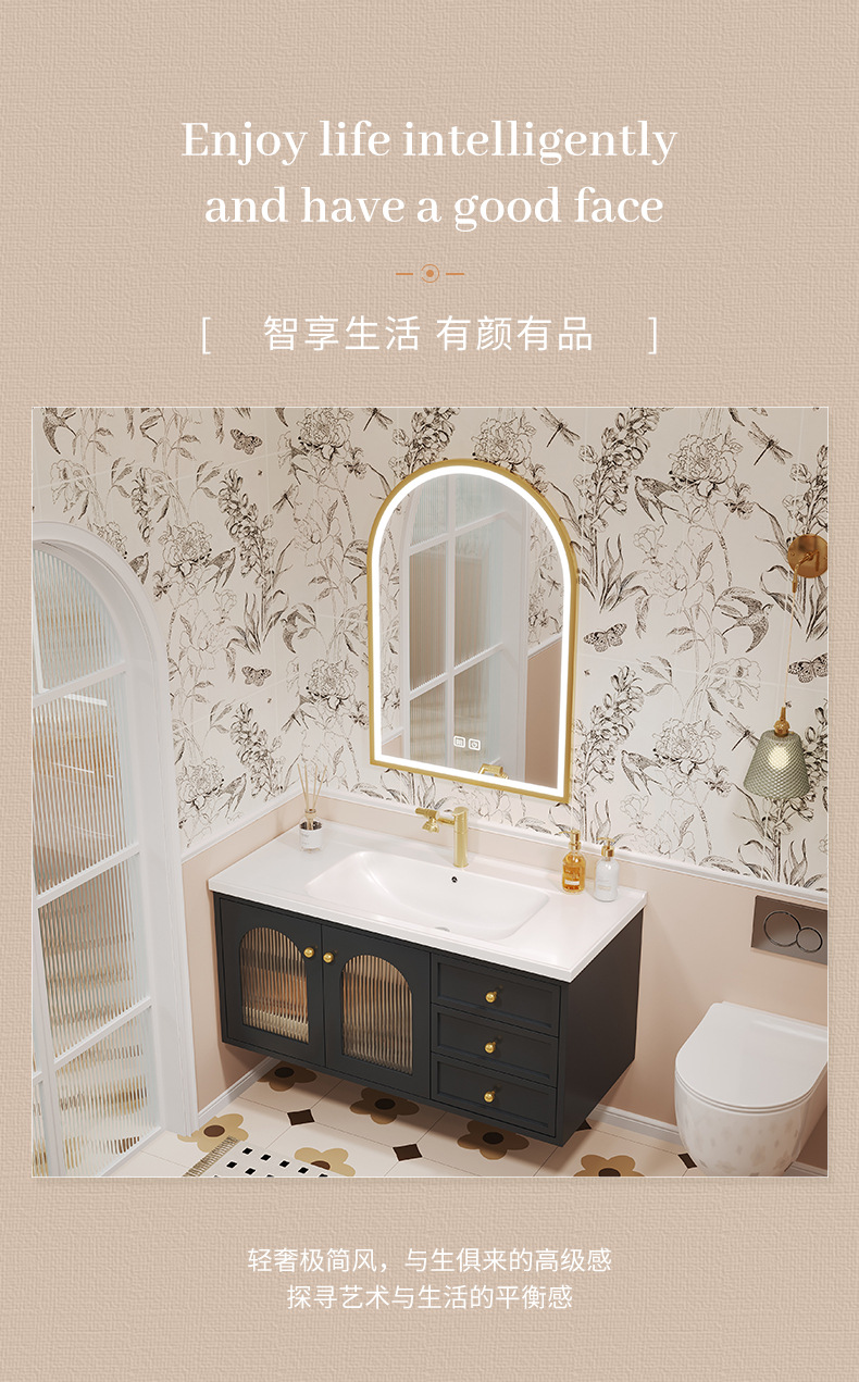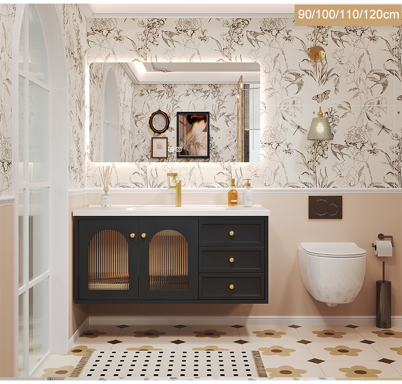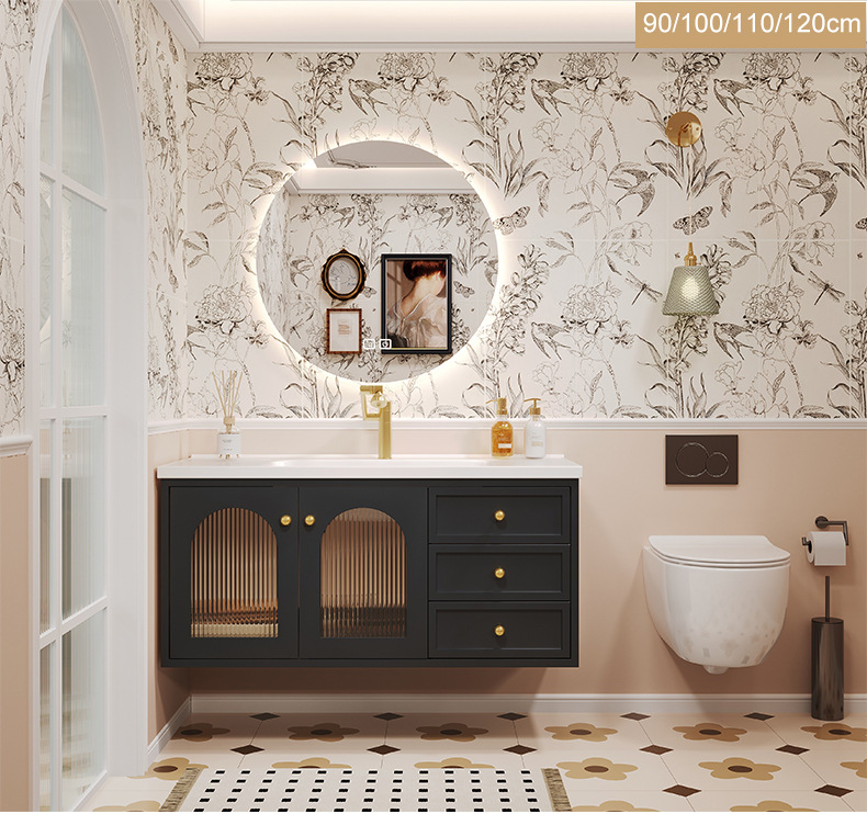 세라믹 일체형 분지 화장실 세면기 캐비닛 조합 세척 테이블 새로운 오크 프랑스 복고풍 욕실 캐비닛스토어 가기