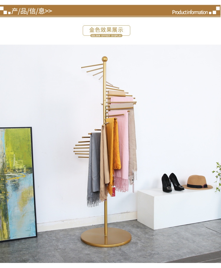 바닥 회전 스카프 디스플레이 랙 골든 아이언 스카프 랙 의류 매장 실크 스카프 디스플레이 랙 크리에이티브 코트 랙