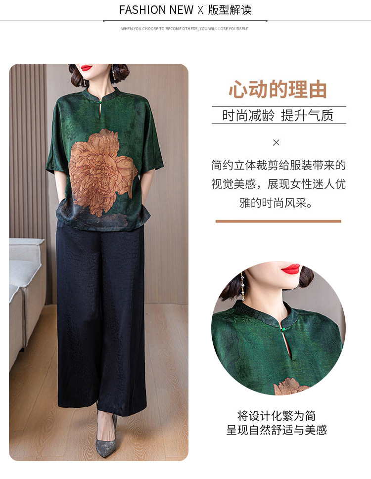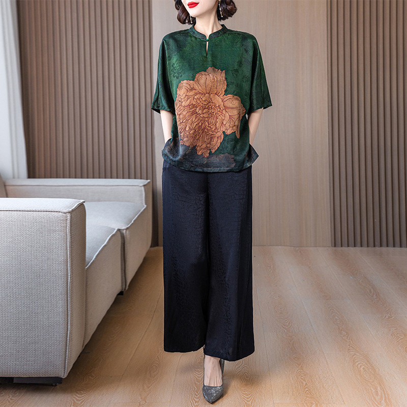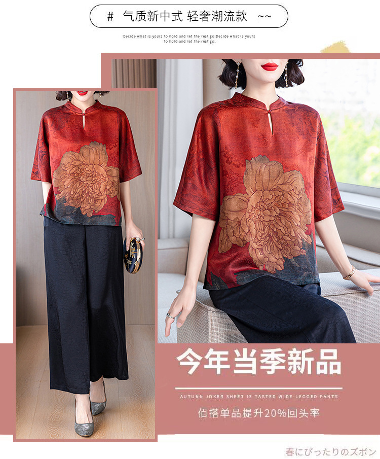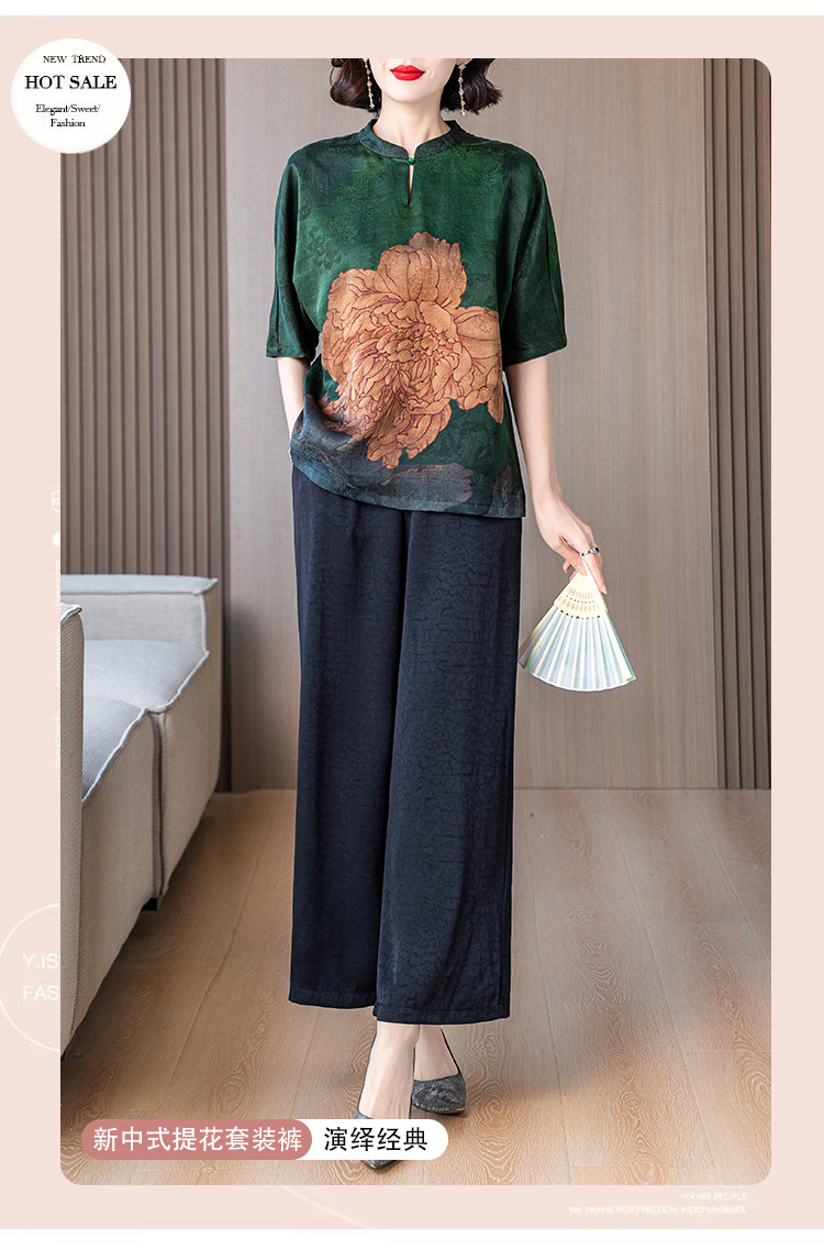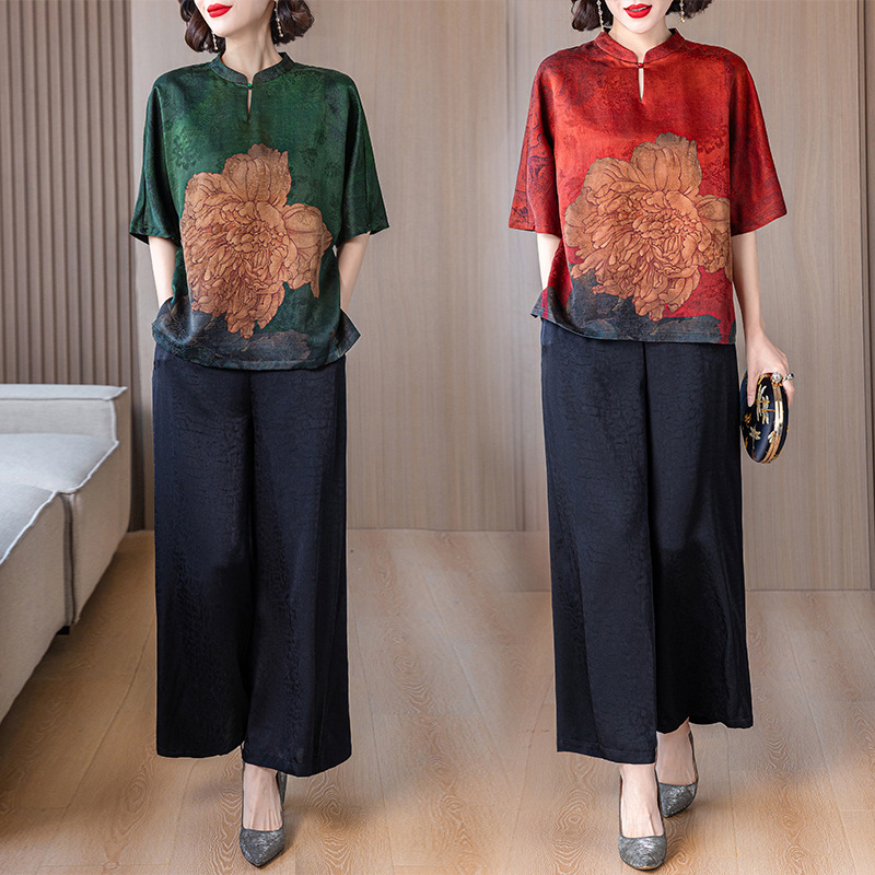 새로운 중국 스타일 어머니의 여름 최고 중년 및 노인 모방 Xiangyun 원사 실크 셔츠 여성의 작은 세트스토어 가기