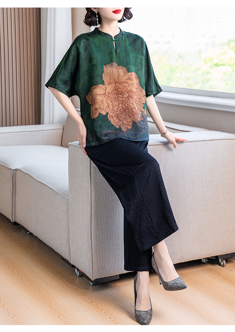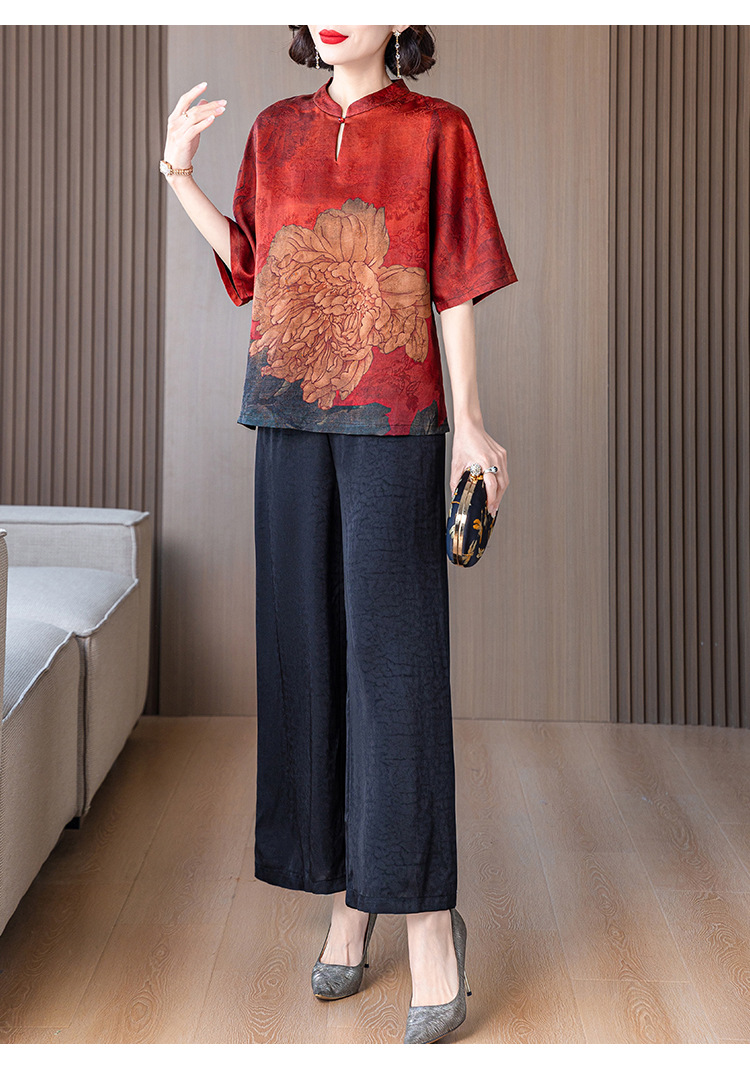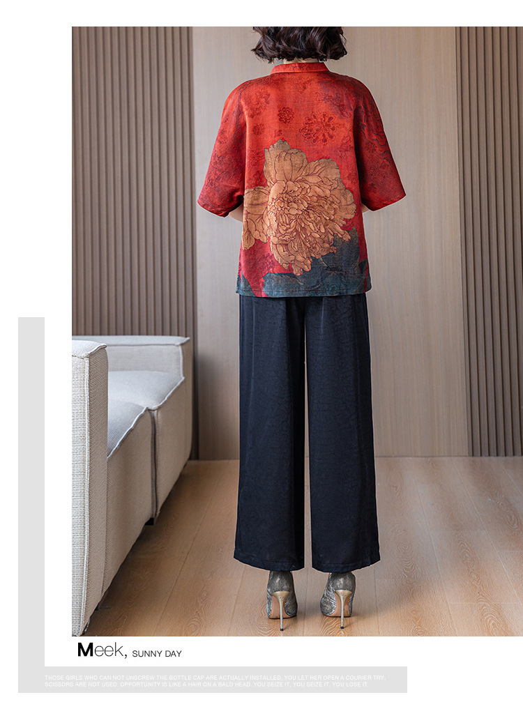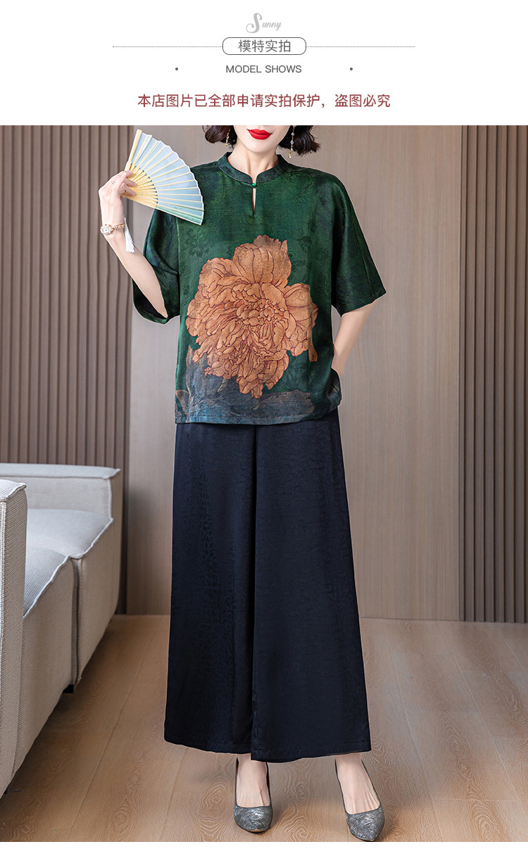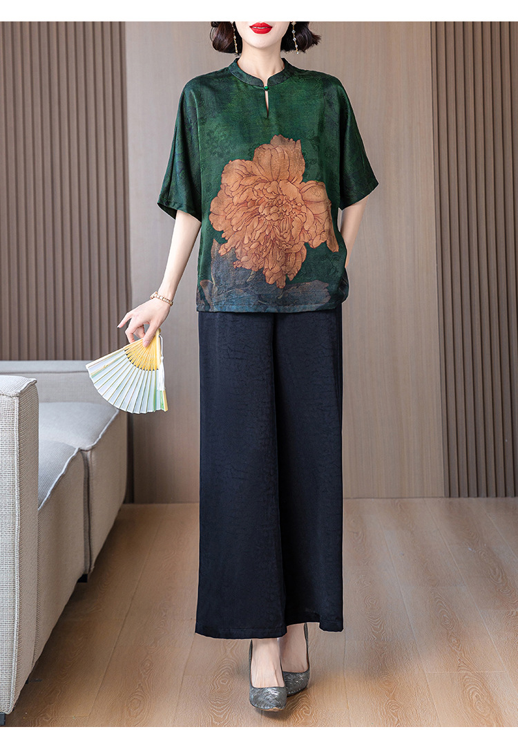 새로운 중국 스타일 어머니의 여름 최고 중년 및 노인 모방 Xiangyun 원사 실크 셔츠 여성의 작은 세트스토어 가기