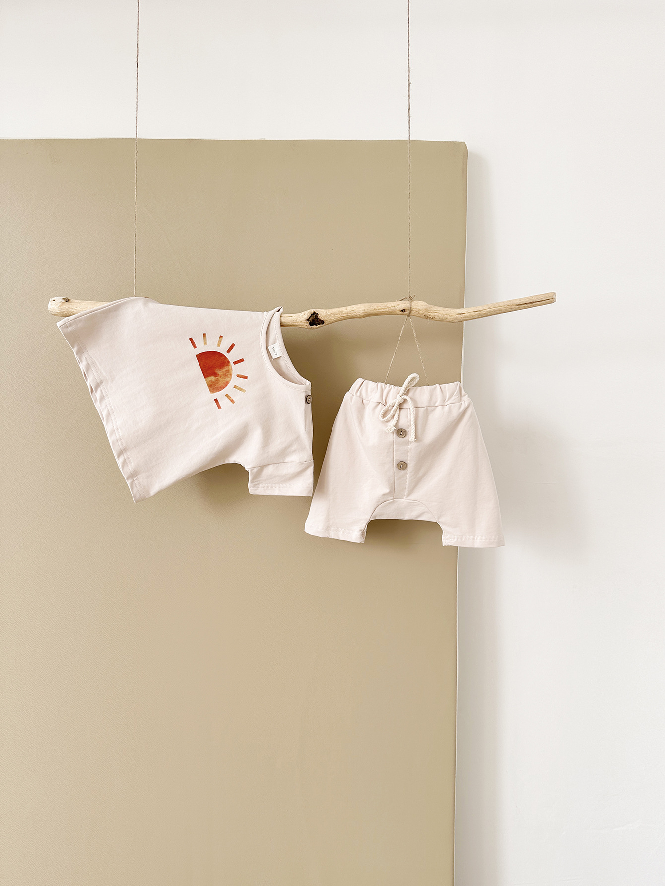 여름 어린이 태양 인쇄 귀여운 짧은 소매 세트 한국 소년 소녀 아기 의류 투피스 대외 무역