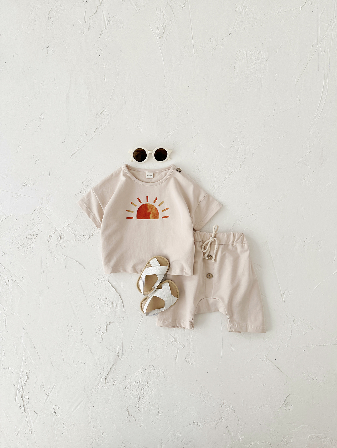 여름 어린이 태양 인쇄 귀여운 짧은 소매 세트 한국 소년 소녀 아기 의류 투피스 대외 무역스토어 가기