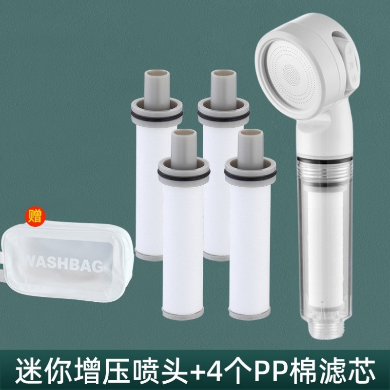 • [아이보리 화이트] 휴대용 부스터 필터 샤워 + 필터 요소 4개 + 보관 가방