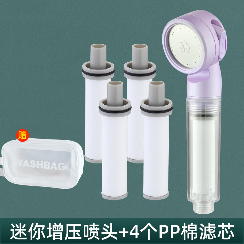 • [로즈 퍼플] 휴대용 부스터 필터 샤워 + 필터 요소 4개 + 보관 가방