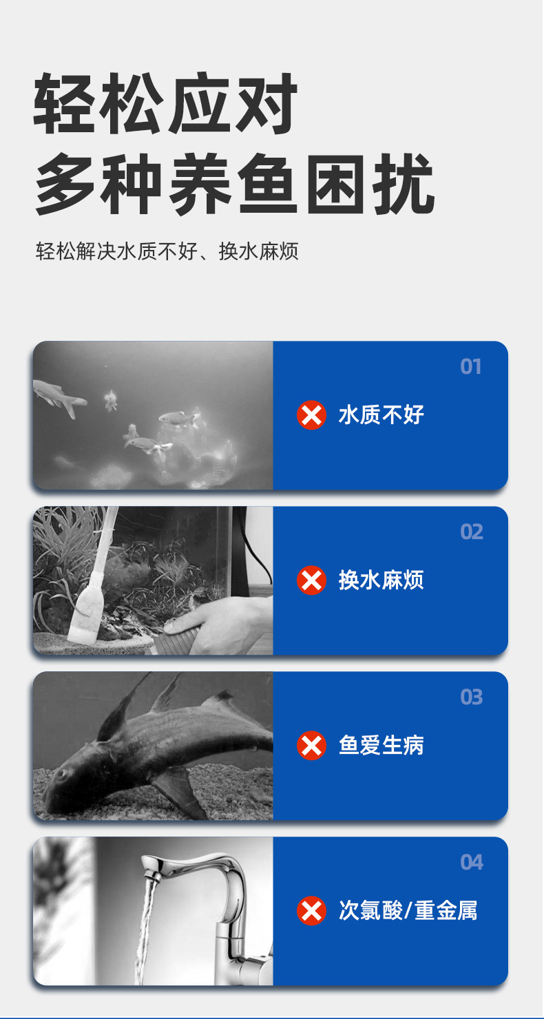 수족관 물고기 탱크 관상용 물고기 Yulebao 물 변화 빠른 염소 제거 안정적인 물 품질 수돗물 표면 건조 물 정화스토어 가기