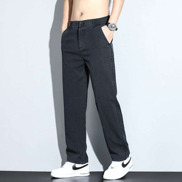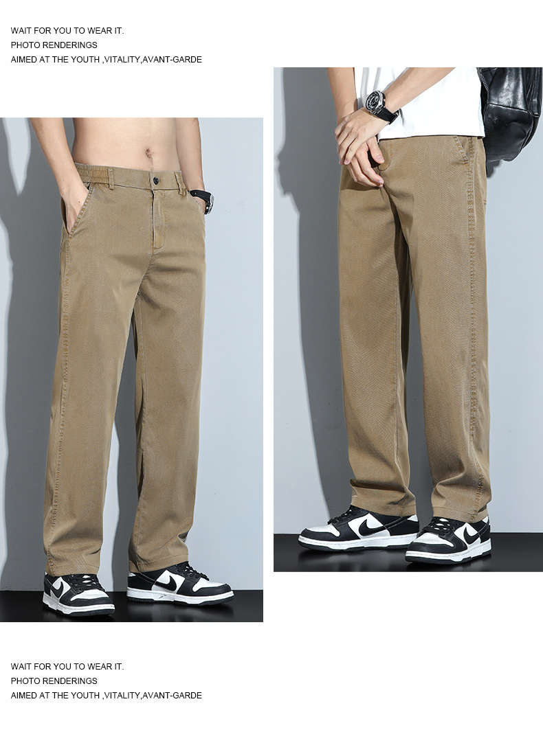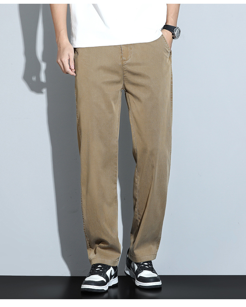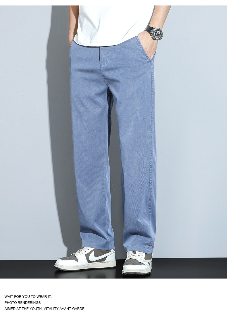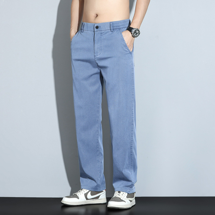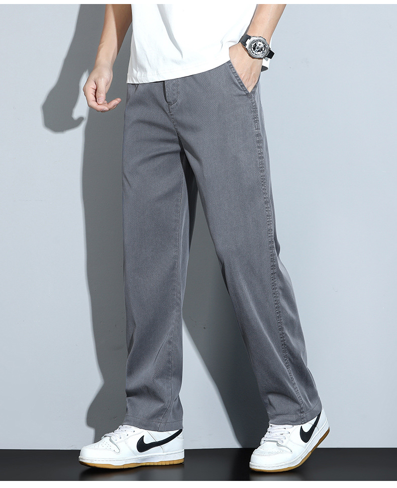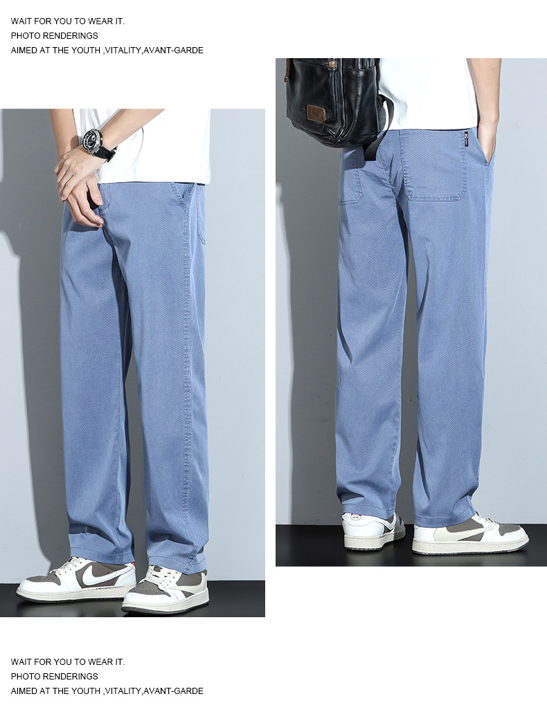 남자 여름 바지 느슨한 스트레이트 텐셀 Lyocell 통기성 얇은 2024 남성용 새로운 아이스 실크 캐주얼 바지