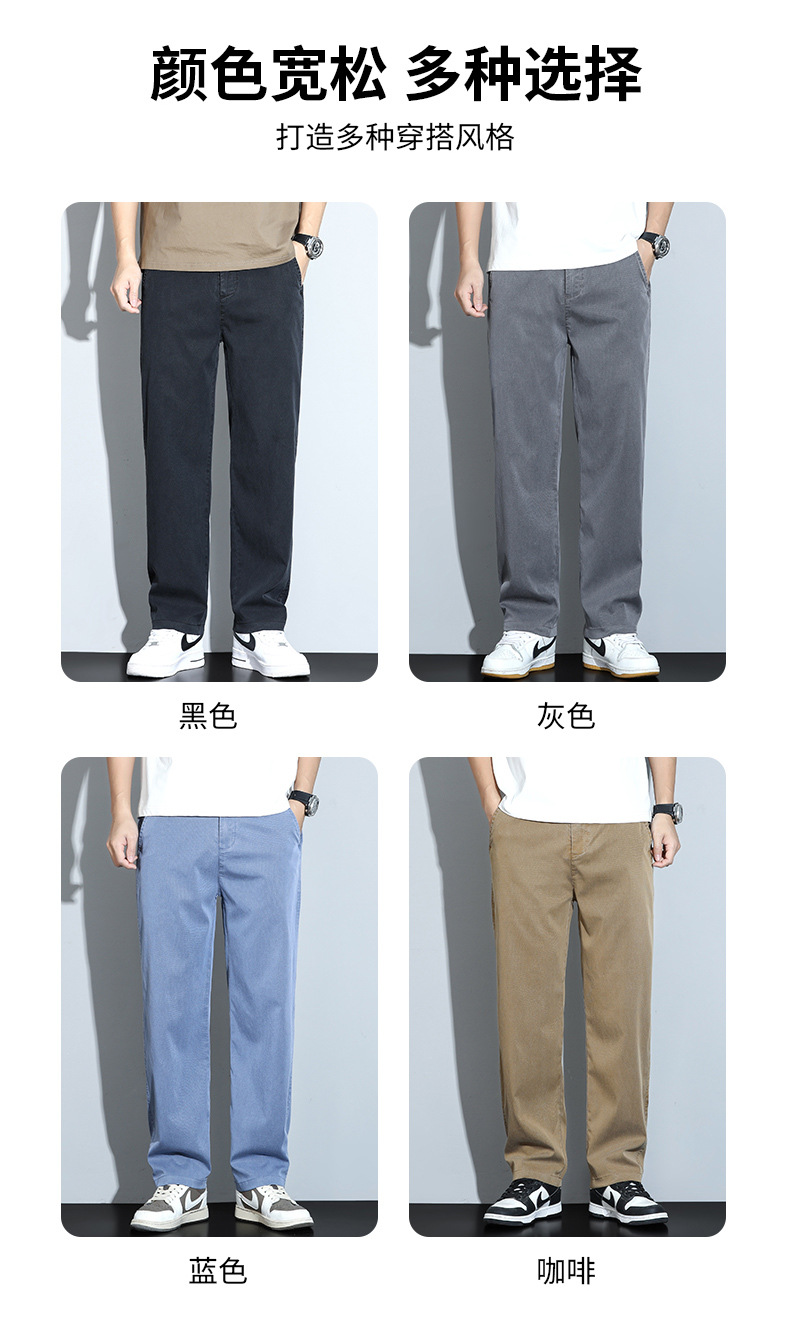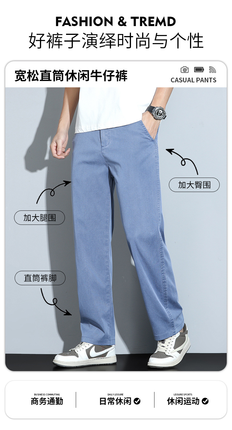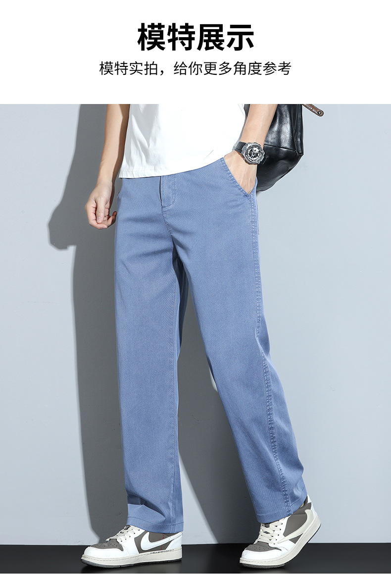 남자 여름 바지 느슨한 스트레이트 텐셀 Lyocell 통기성 얇은 2024 남성용 새로운 아이스 실크 캐주얼 바지스토어 가기