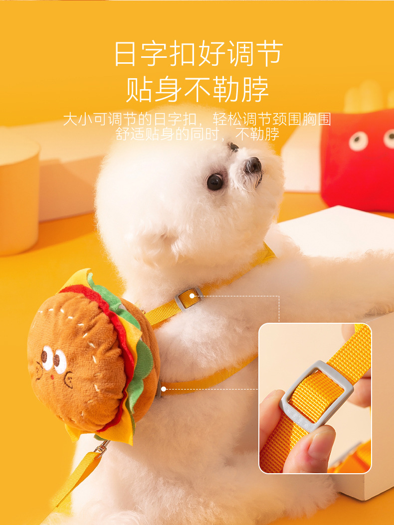 애완 동물 귀여운 햄버거 프라이 배낭 견인 밧줄 고양이 조끼 개 스트랩 개 걷는 밧줄 용품