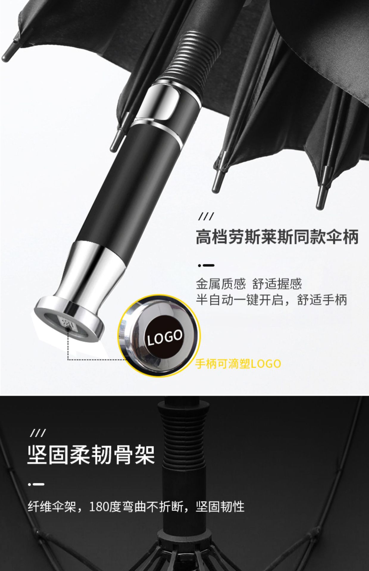 공장 직접 대대 긴 손잡이 증가 골프 우산 4s 상점 광고 우산 금속 손잡이 비와 빛나는 이중 사용 맞춤형 로고스토어 가기