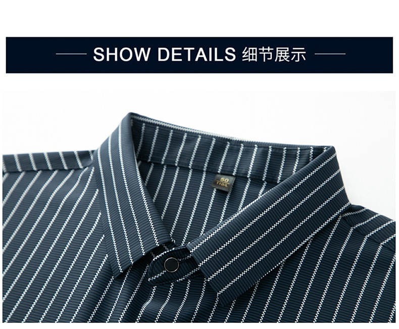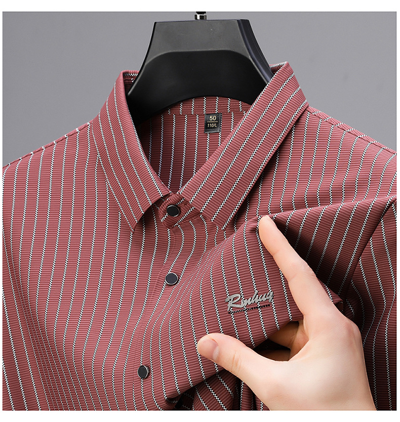 하이 엔드 남성 청소년 비즈니스 캐주얼 tracless 셔츠 여름 아이스 실크 스트레치 핫 스탬핑 스트라이프 드 래핑 짧은 소매 탑
