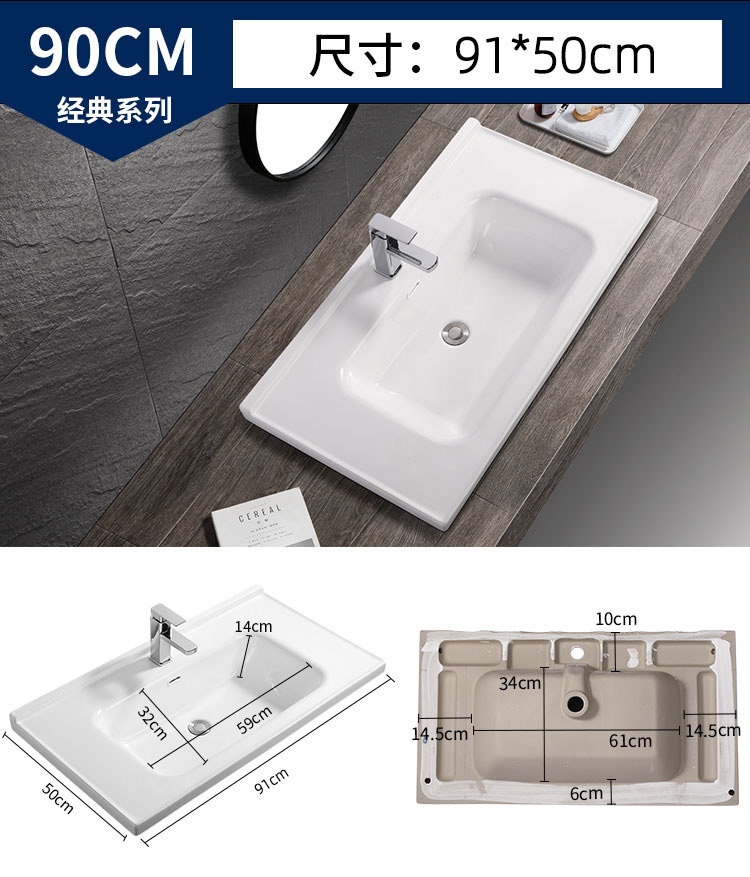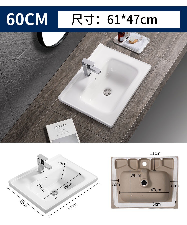 올인원 세라믹 세척 테이블 반 임베디드 욕실 분지 욕실 캐비닛 조리대 세면대 신제품 세탁기 단일 분지