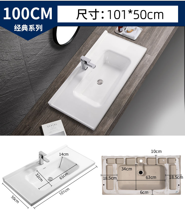 올인원 세라믹 세척 테이블 반 임베디드 욕실 분지 욕실 캐비닛 조리대 세면대 신제품 세탁기 단일 분지스토어 가기