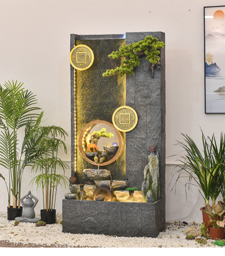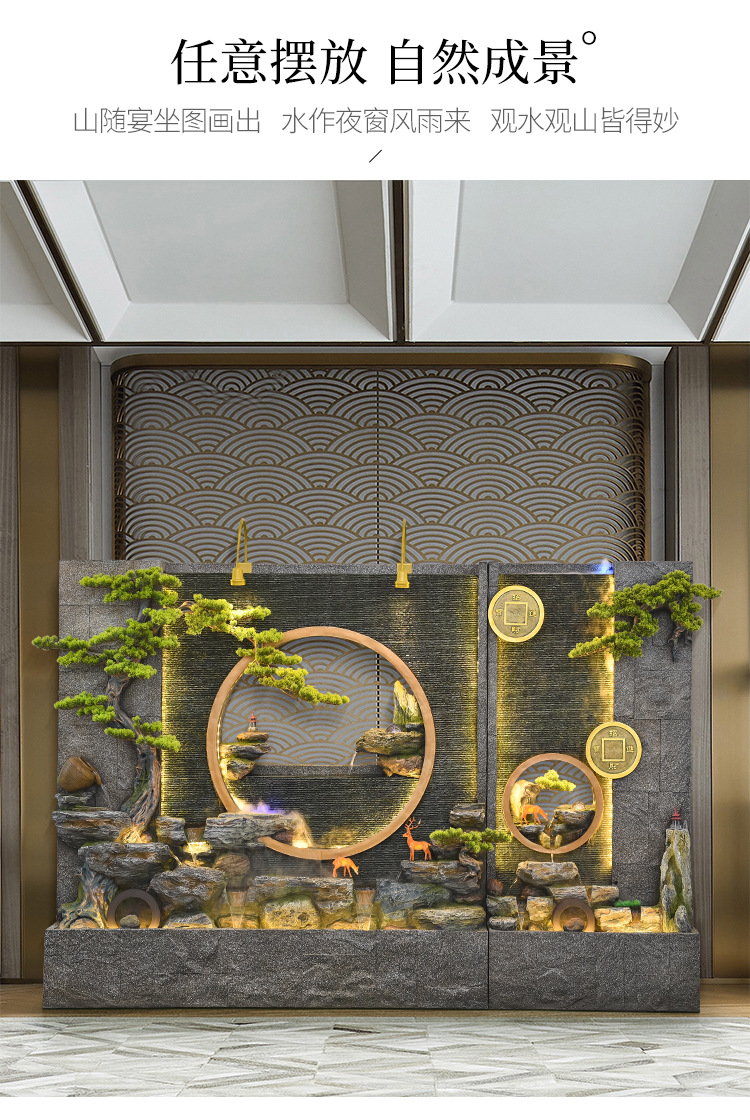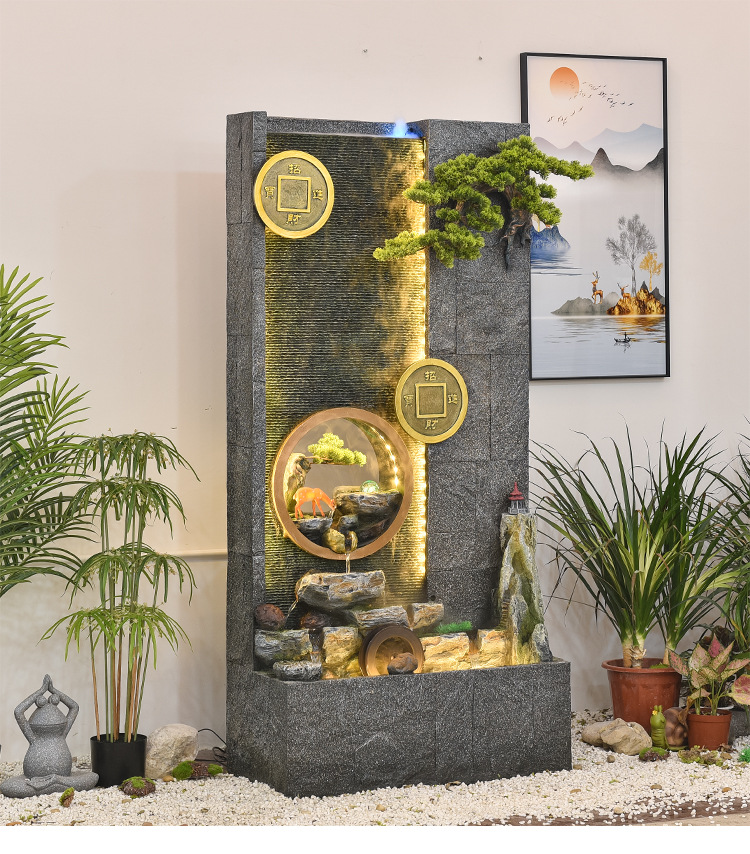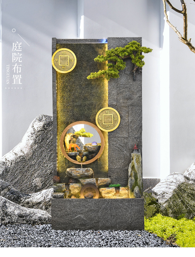 대형 물 커튼 벽 흐르는 물 스크린 사무실 현관 장식 빌라 야외 안뜰 바위 분수 조경 장식품스토어 가기