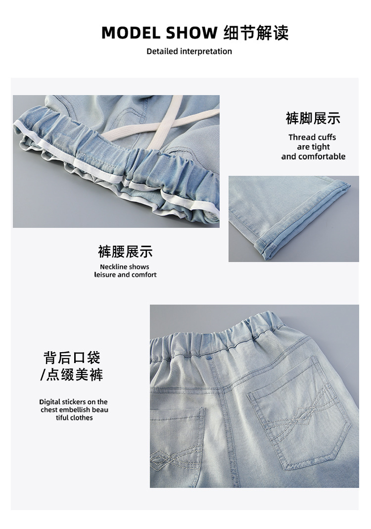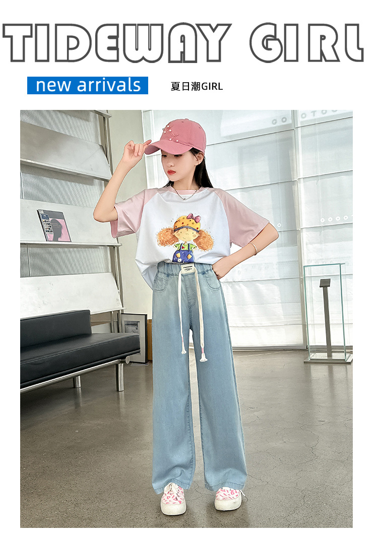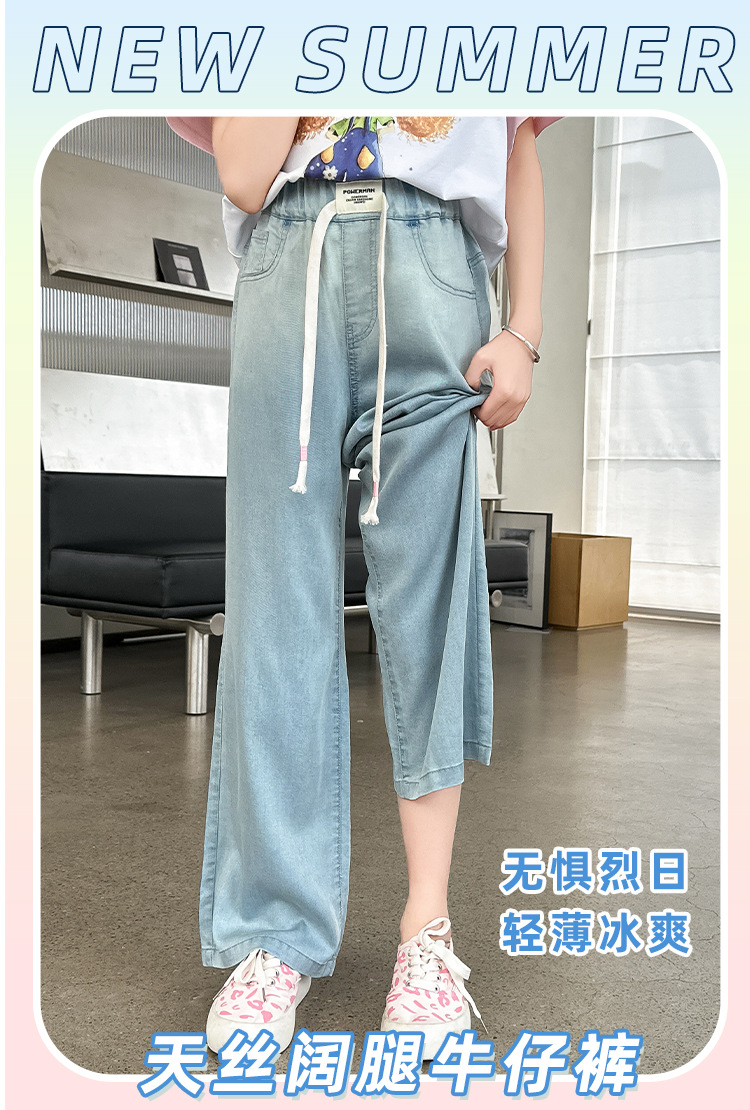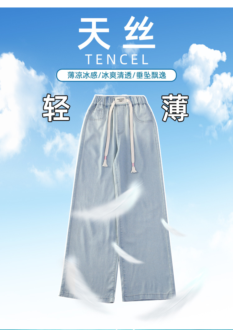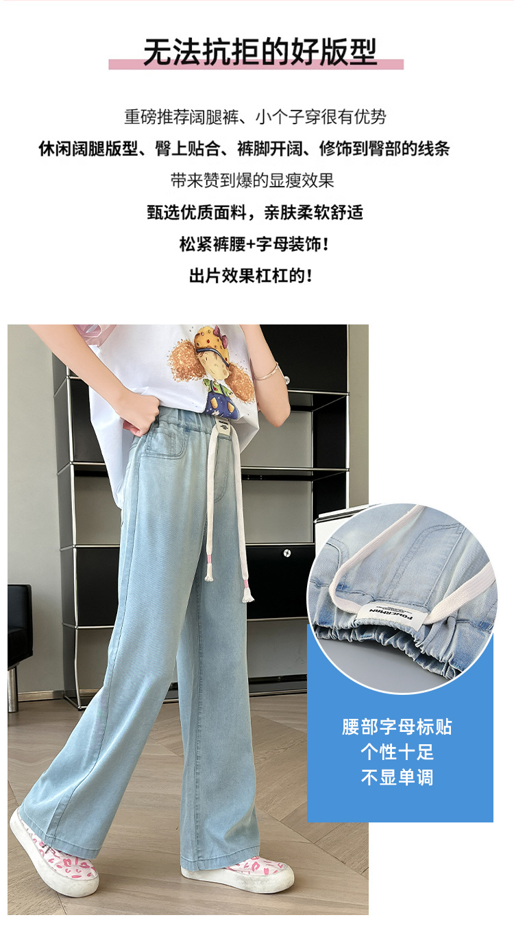 소녀 서양식 여름 경량 텐셀 데님 넓은 다리 바지 여름 어린이 느슨한 스트레이트 바지 큰 어린이 긴 바지스토어 가기
