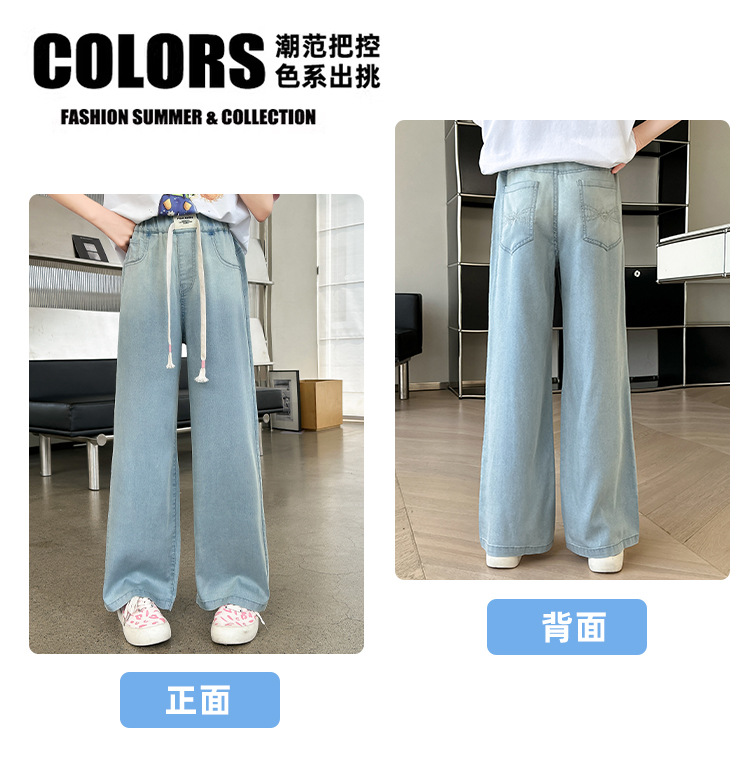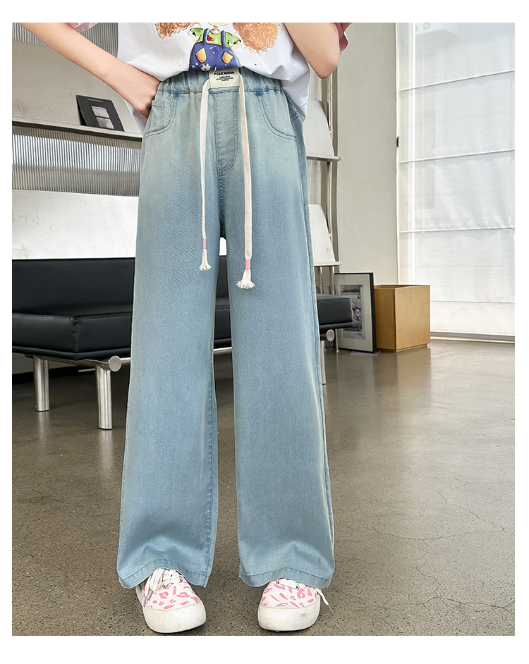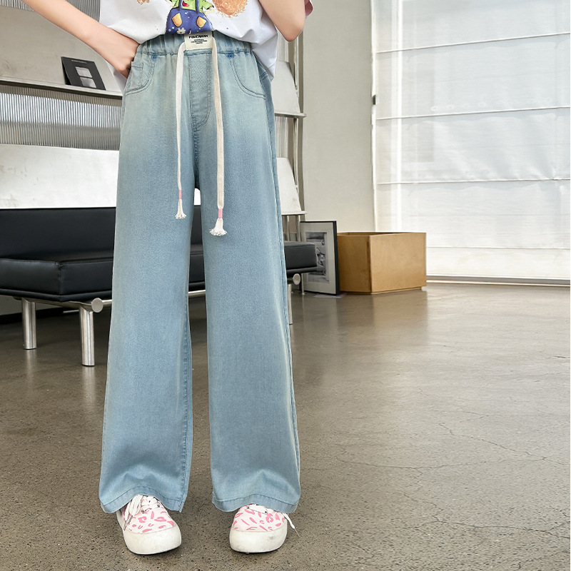 소녀 서양식 여름 경량 텐셀 데님 넓은 다리 바지 여름 어린이 느슨한 스트레이트 바지 큰 어린이 긴 바지