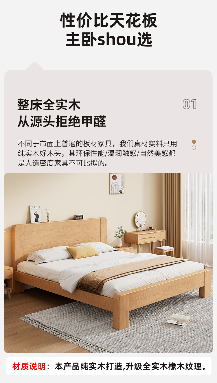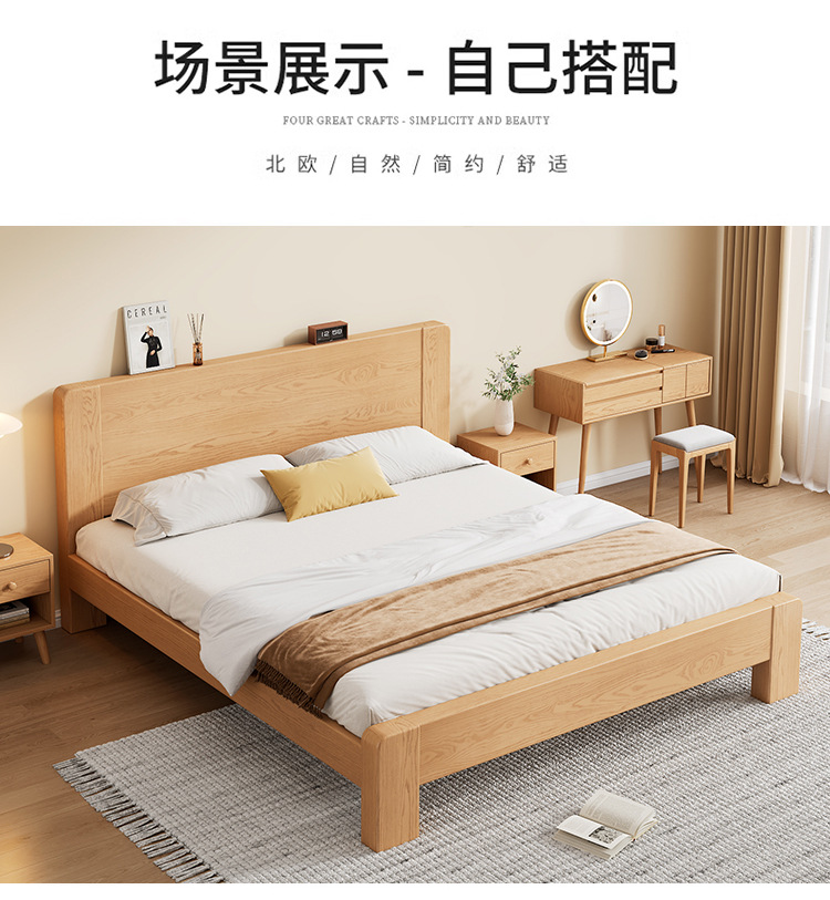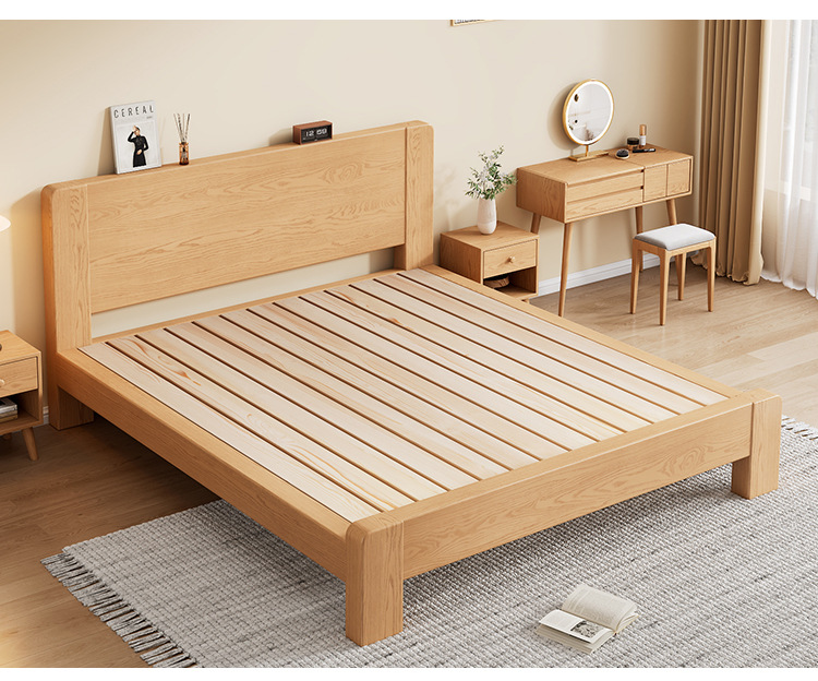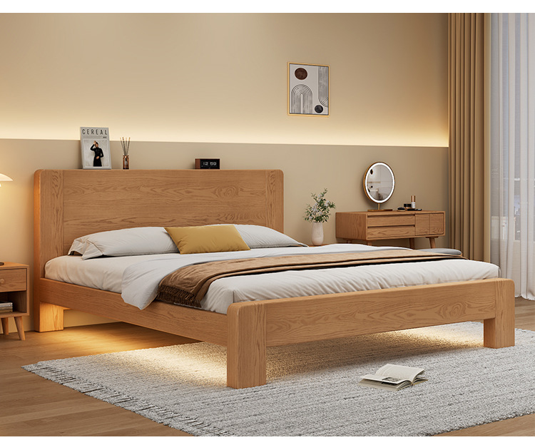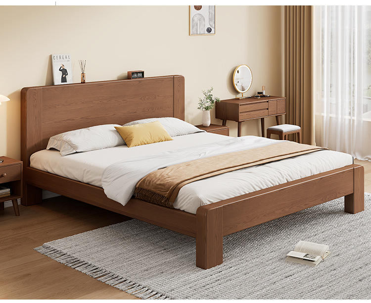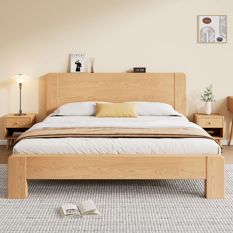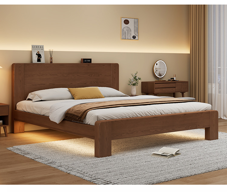 전체 단단한 나무 침대 현대 간단한 마스터 침실 고무 나무 침대 프레임 1.2 미터 싱글 침대 임대 1.5 미터 더블 신제품
