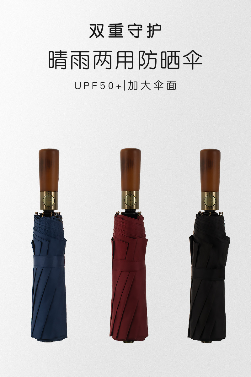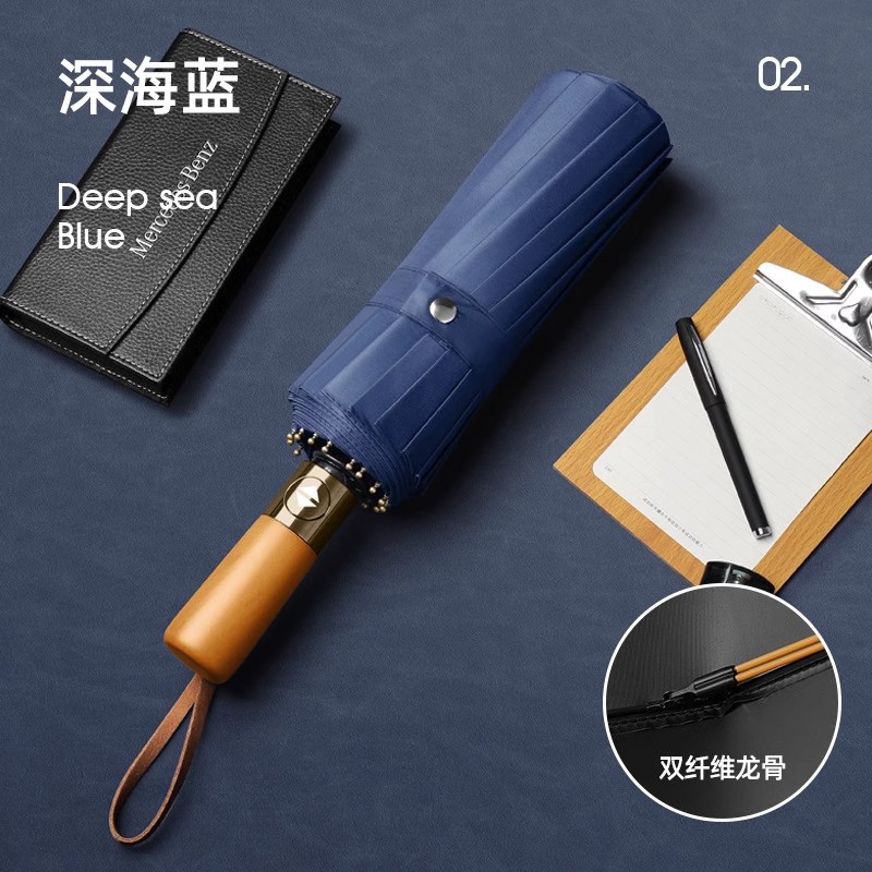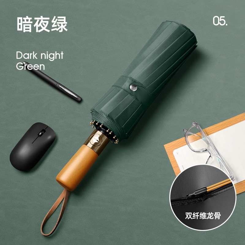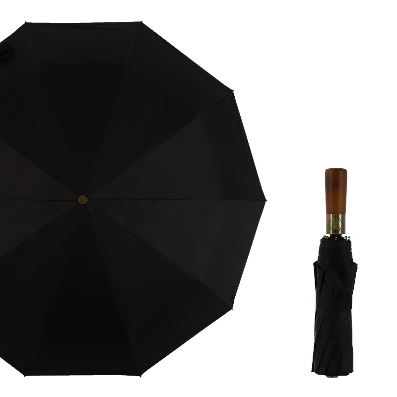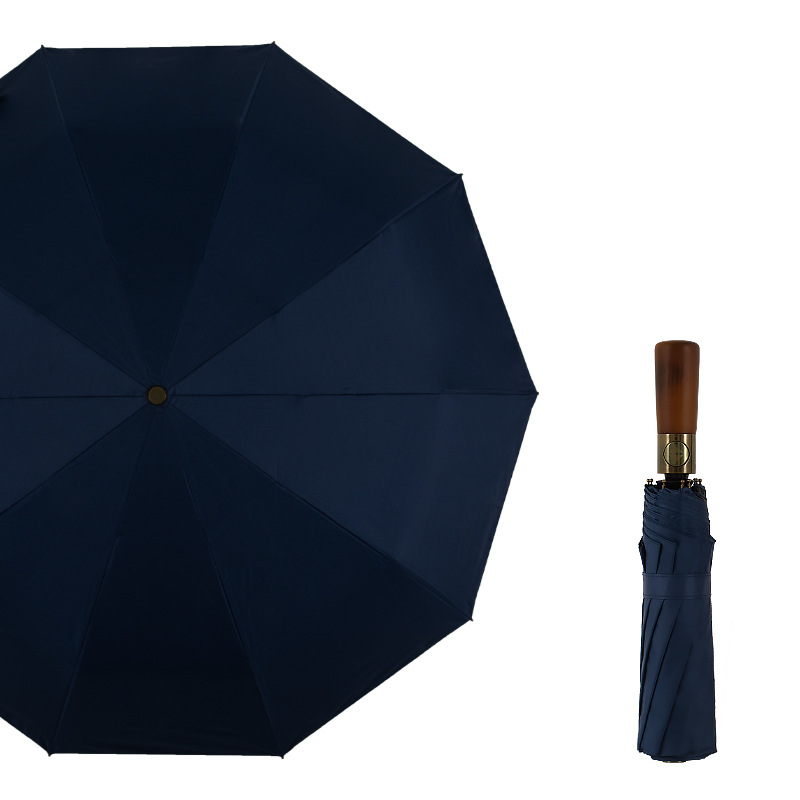 완전 자동 접는 나무 손잡이 남성 사업 우산 3 접는 방풍 이중 이중 사용 우산 10 뼈 강화 우산스토어 가기