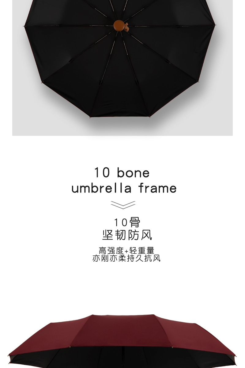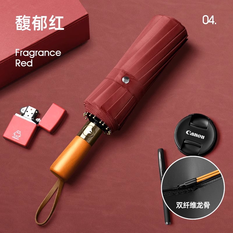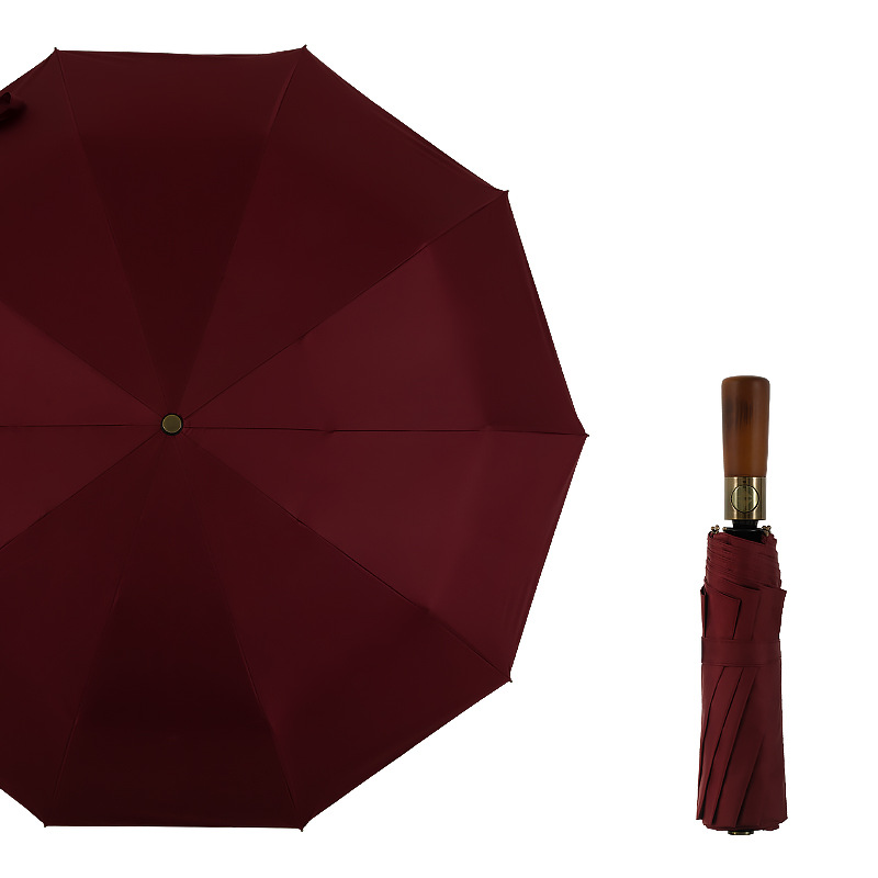 완전 자동 접는 나무 손잡이 남성 사업 우산 3 접는 방풍 이중 이중 사용 우산 10 뼈 강화 우산